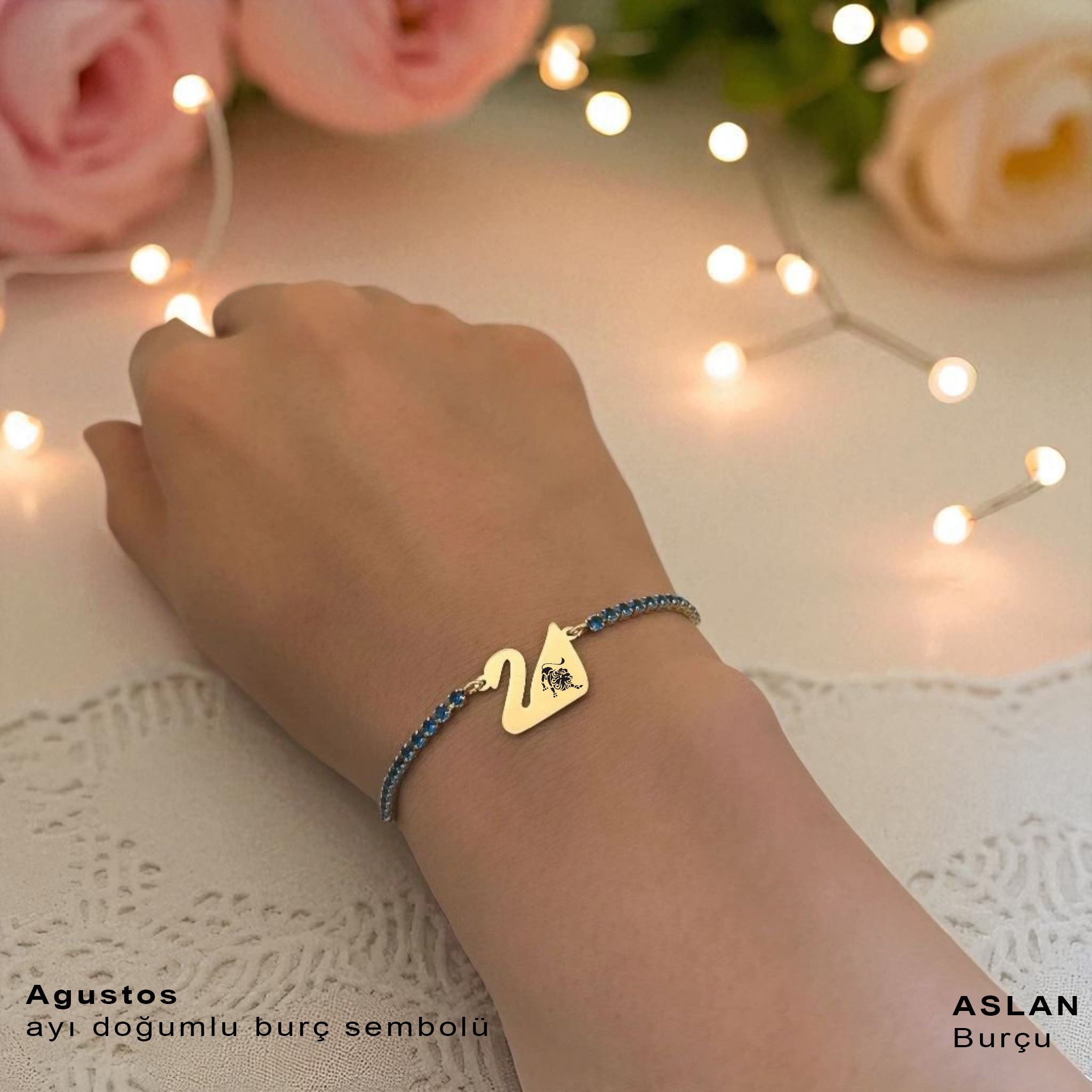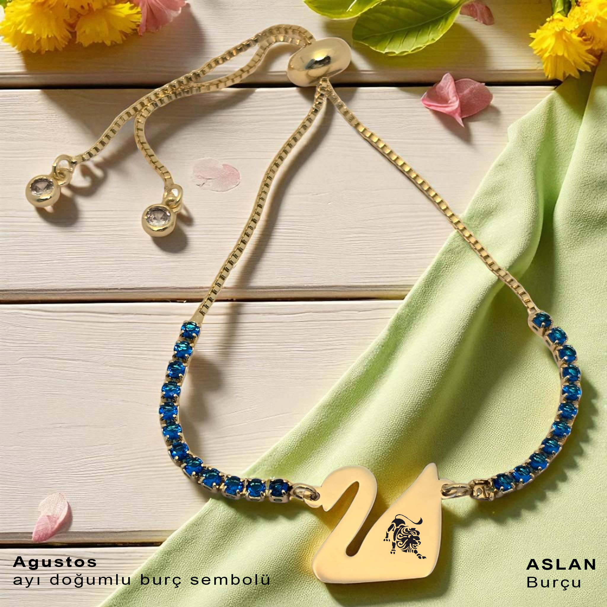 “14 Ayar Altın Plakalı Burca Özel Altın Renkli Zincirli Mavi Taş Desenli Kuğu Kuşu Figürlü Hediye Bileklik-600” için yorum yapan ilk kişi siz olun