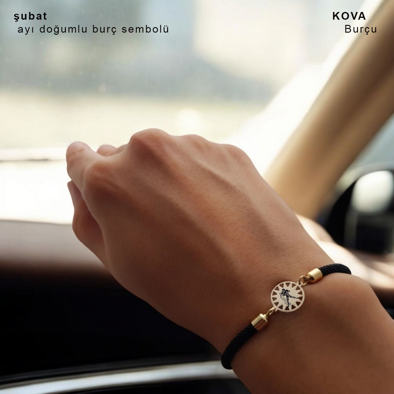-Tasarım: Güneş motifli ve siyah örgü ipli.