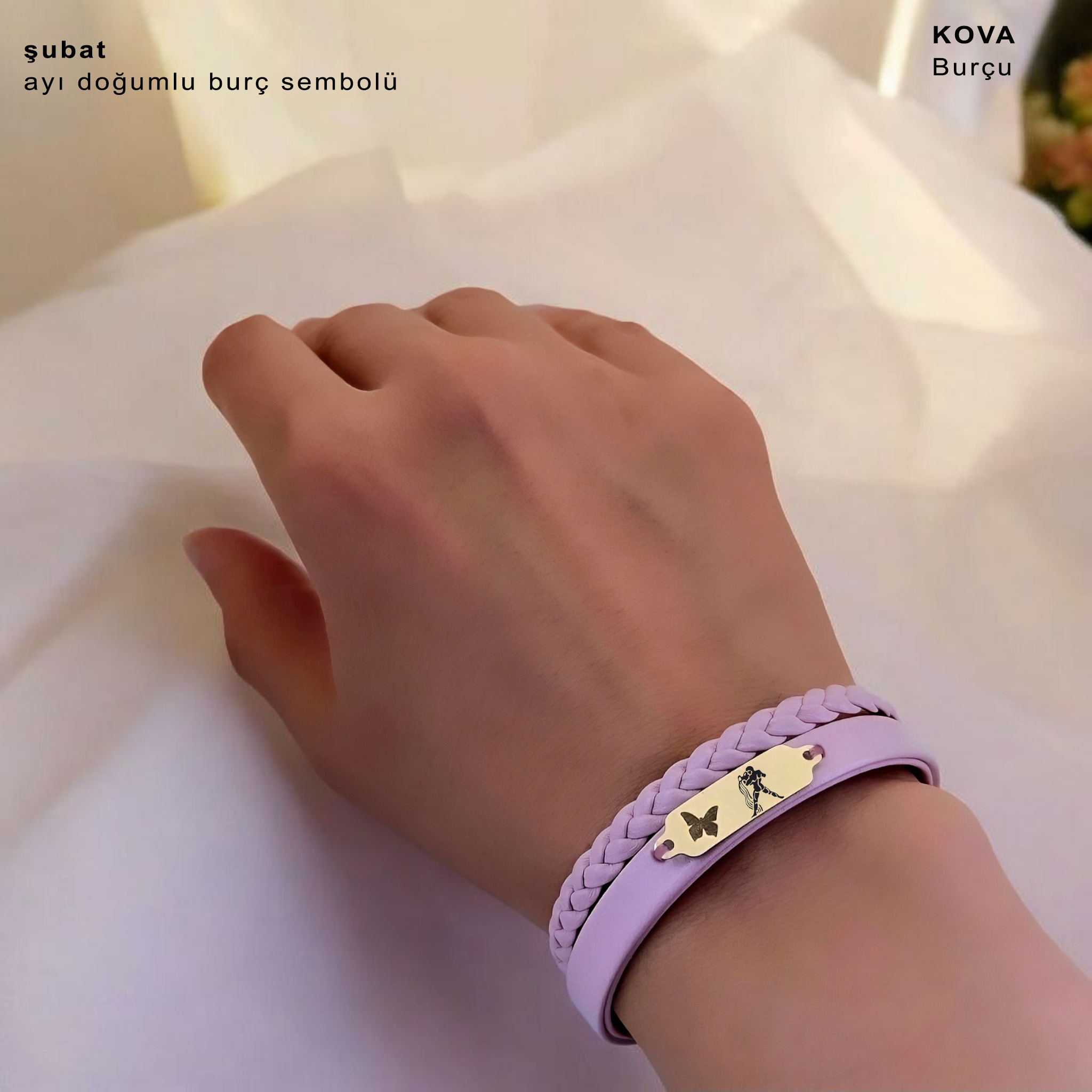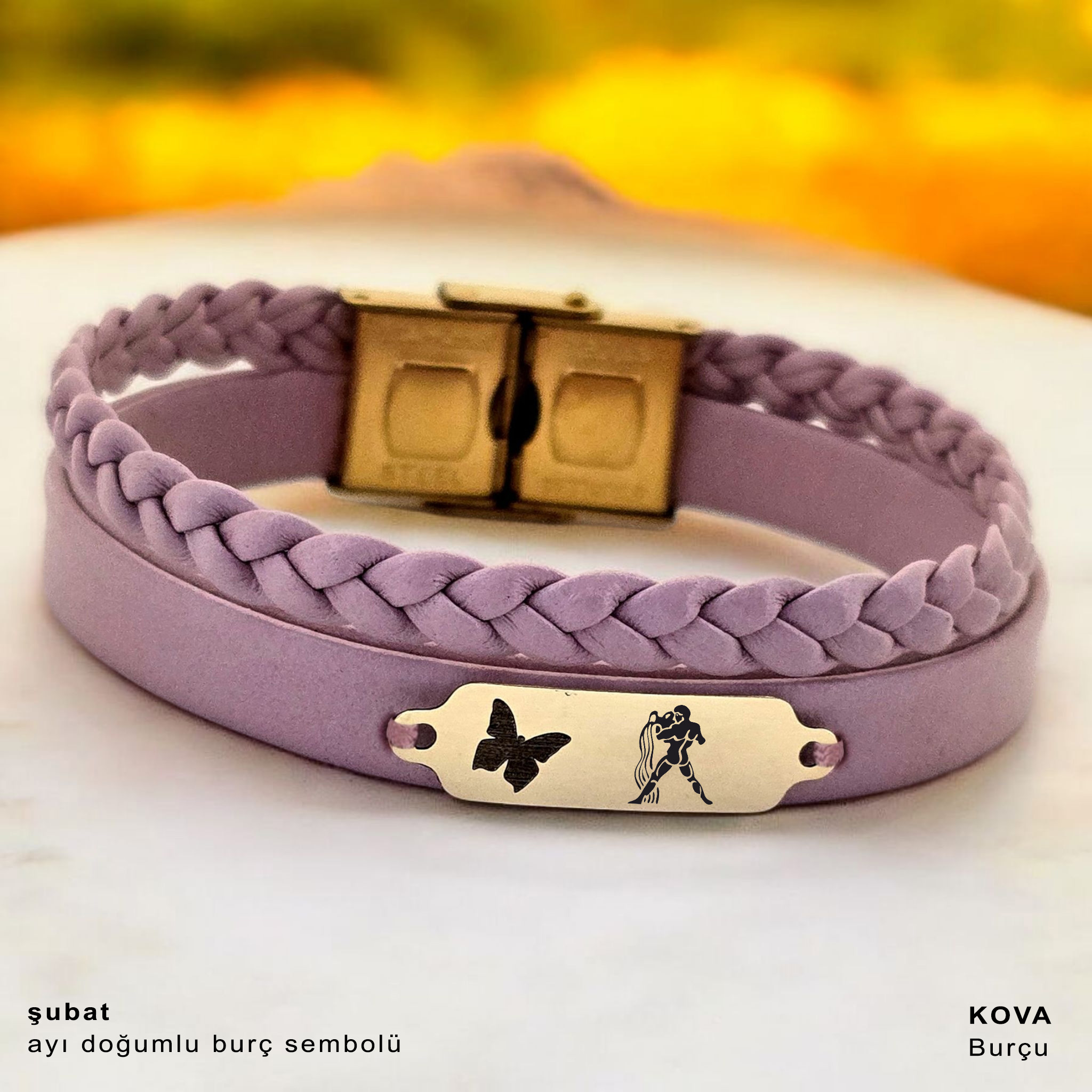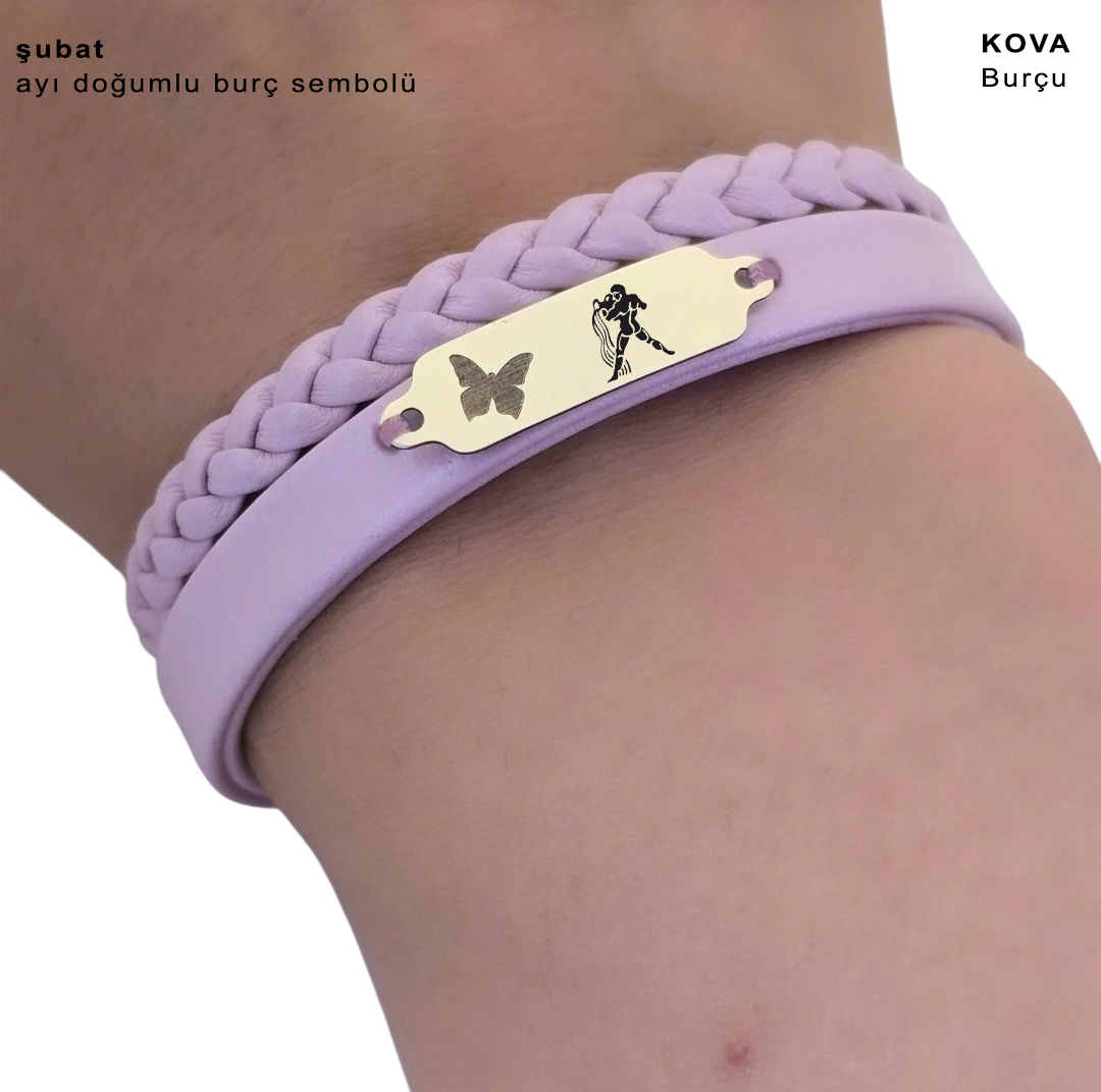 “14 Ayar Altın Plakalı Burca Özel Kelebek Motifli Açık Mor Derili Hediye Bileklik-655” için yorum yapan ilk kişi siz olun