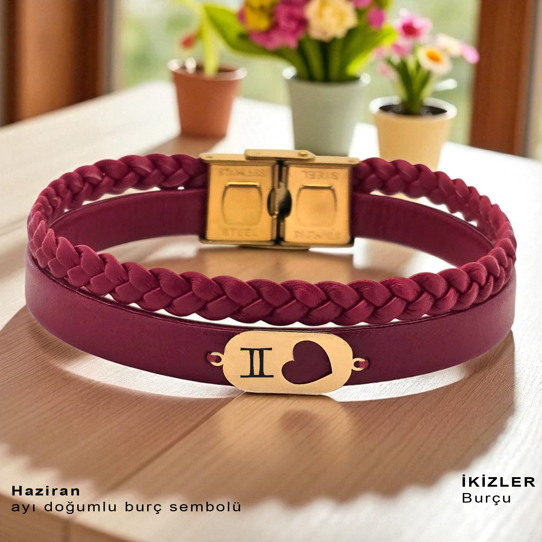 “14 Ayar Altın Plakalı Doğum Ayına Özel Doğal Bordo Derili Kalp Detaylı Oval Figürlü Hediye Bileklik-559” için yorum yapan ilk kişi siz olun