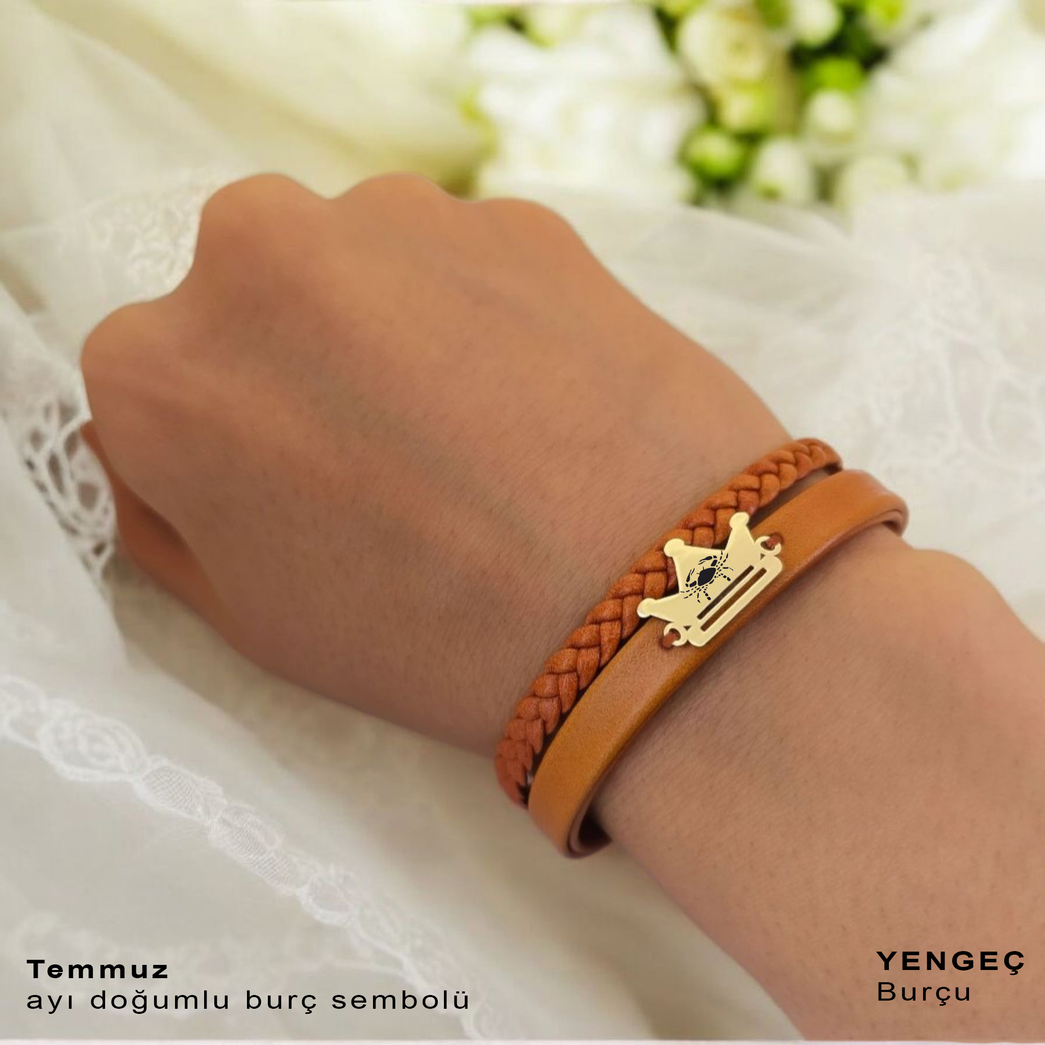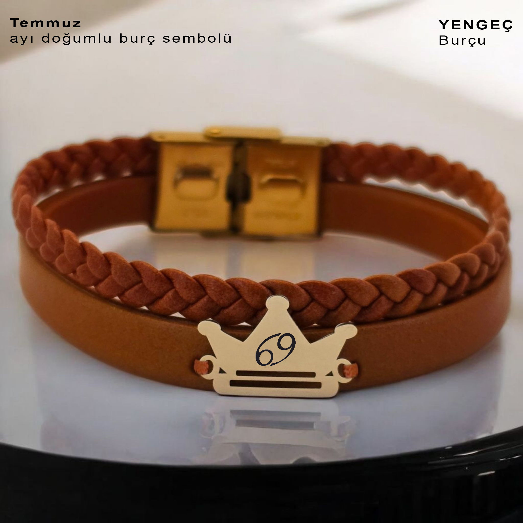 -Tasarım: Taç motifli ve doğal kahverengi derili.