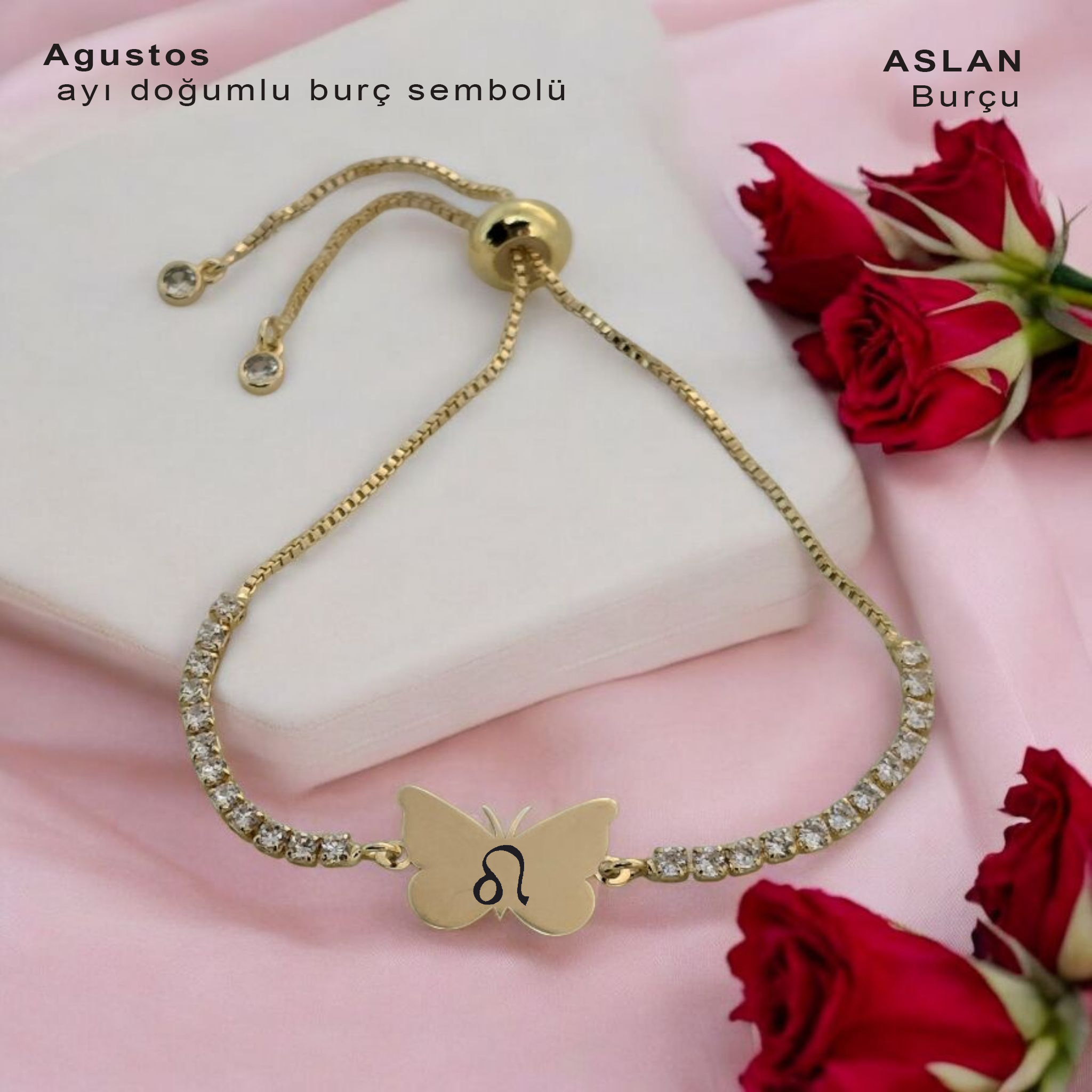 “14 Ayar Altın Plakalı Doğum Ayına Özel Zincirli Beyaz Taş Desenli Kelebek Figürlü Hediye Bileklik-342” için yorum yapan ilk kişi siz olun