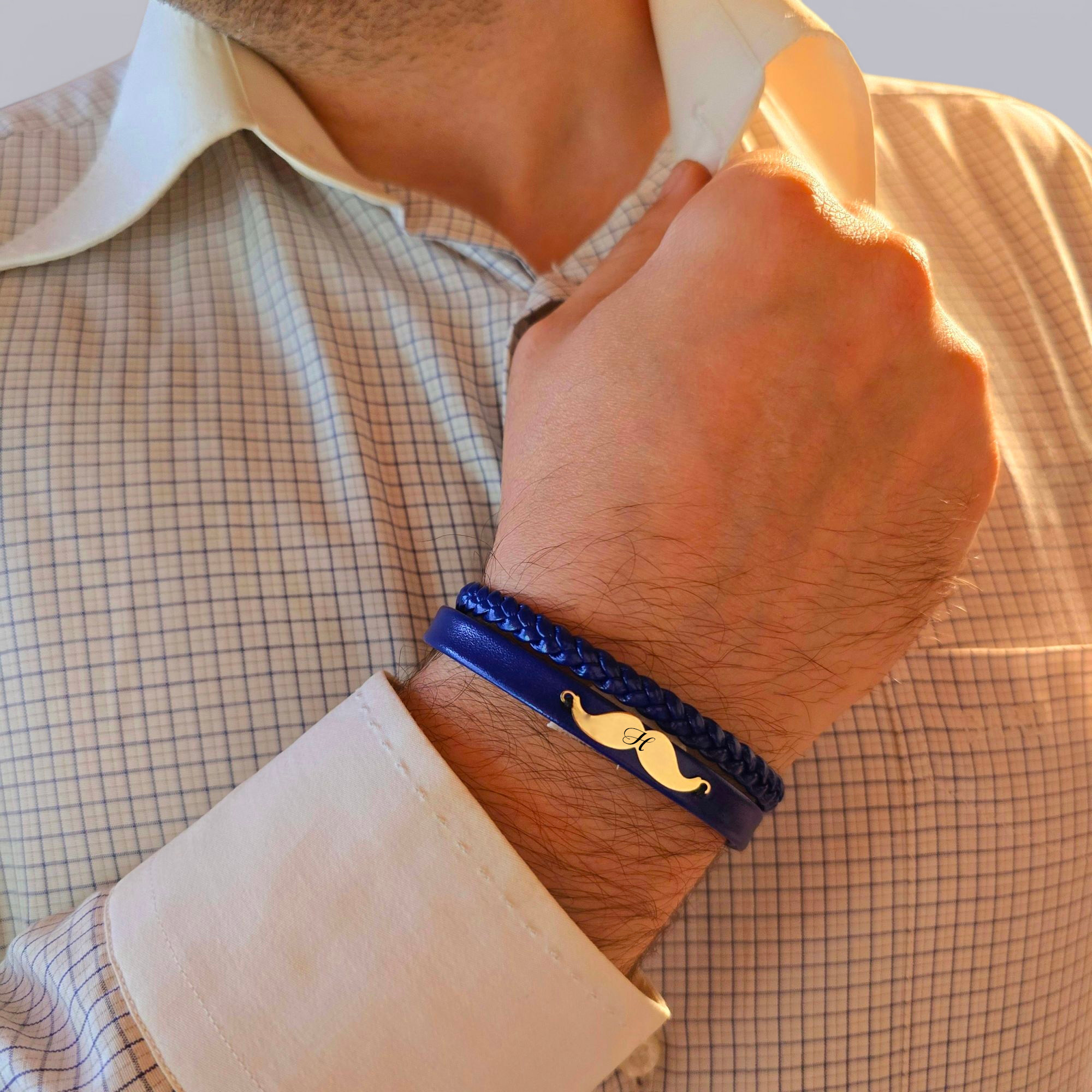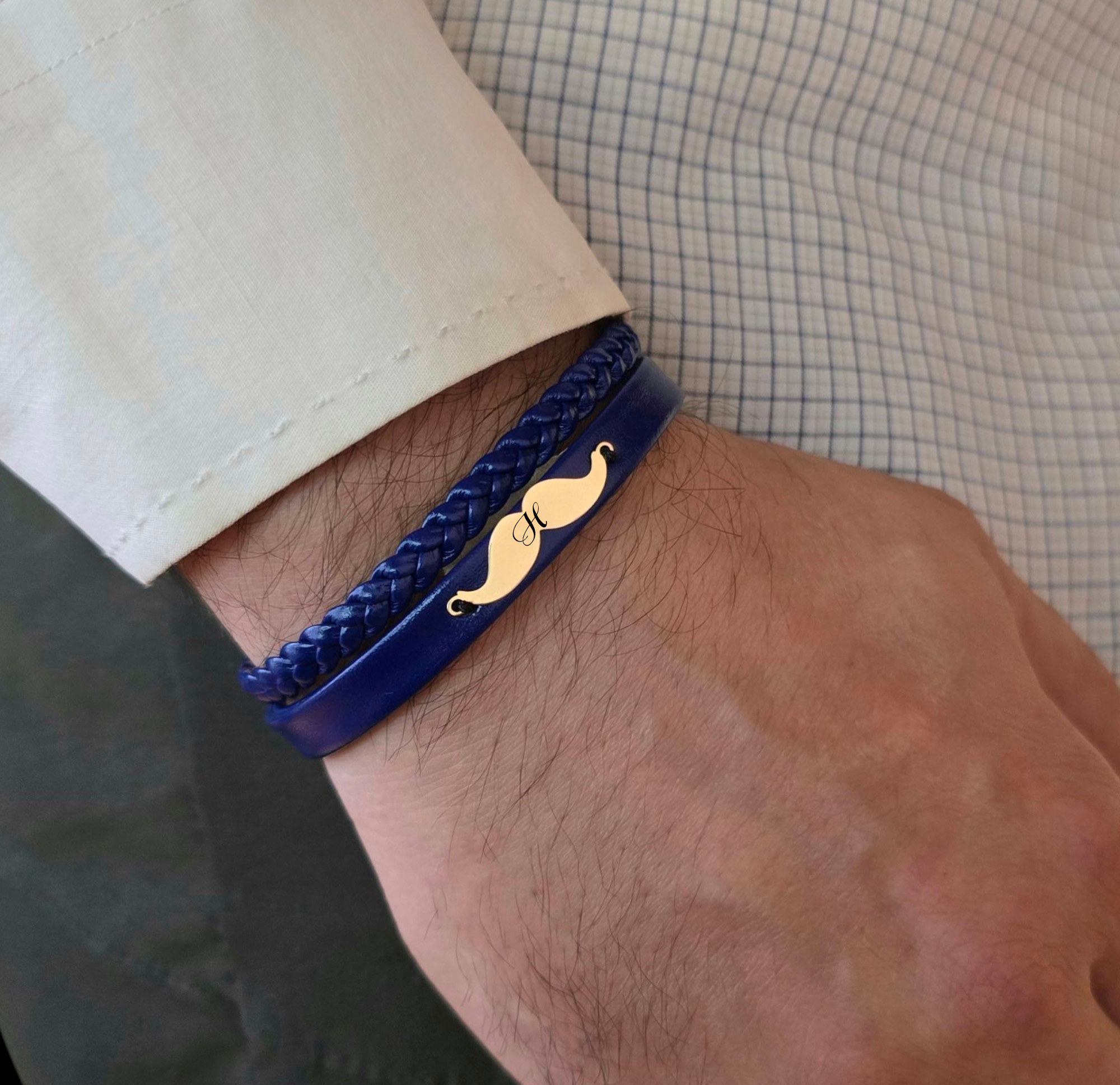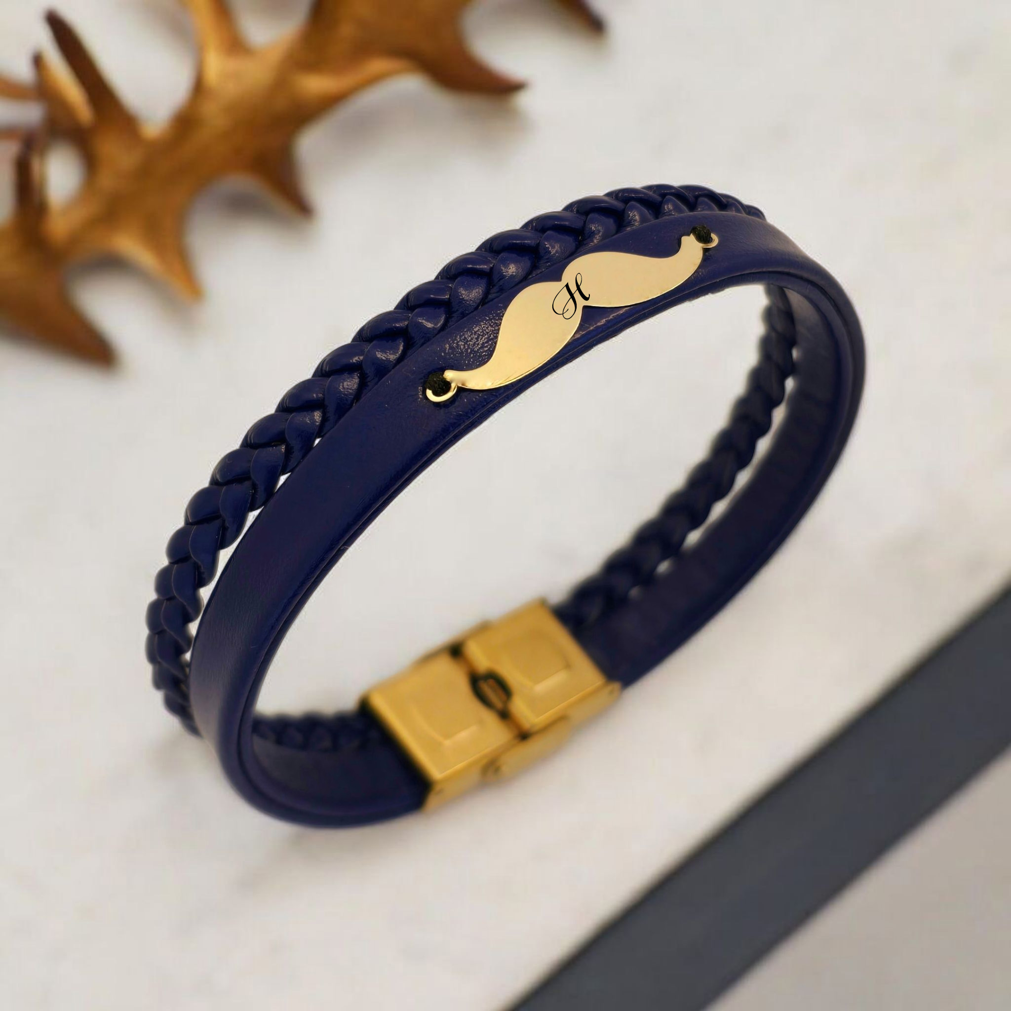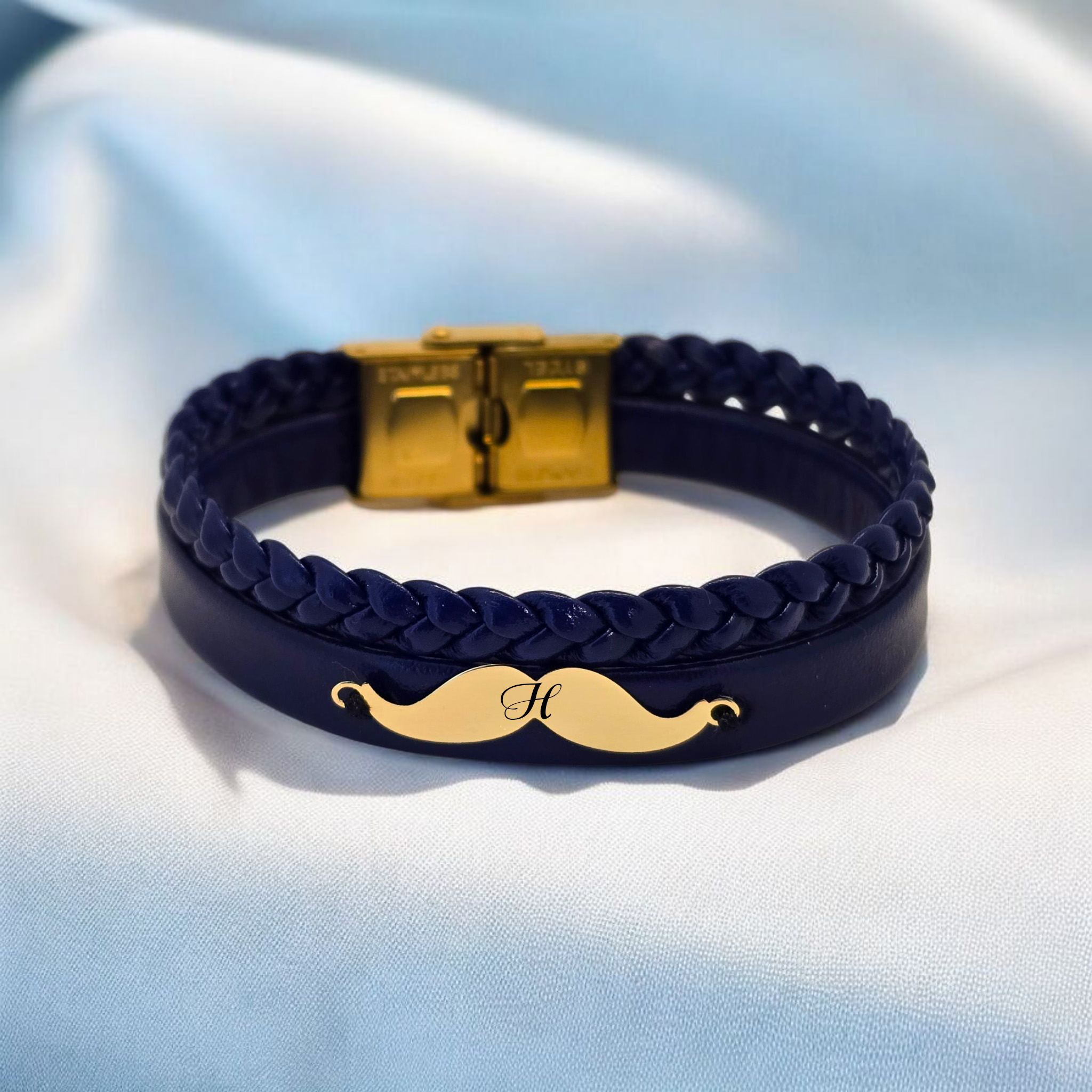 -Tasarım: Bıyık motifli ve hakiki lacivert derili.
