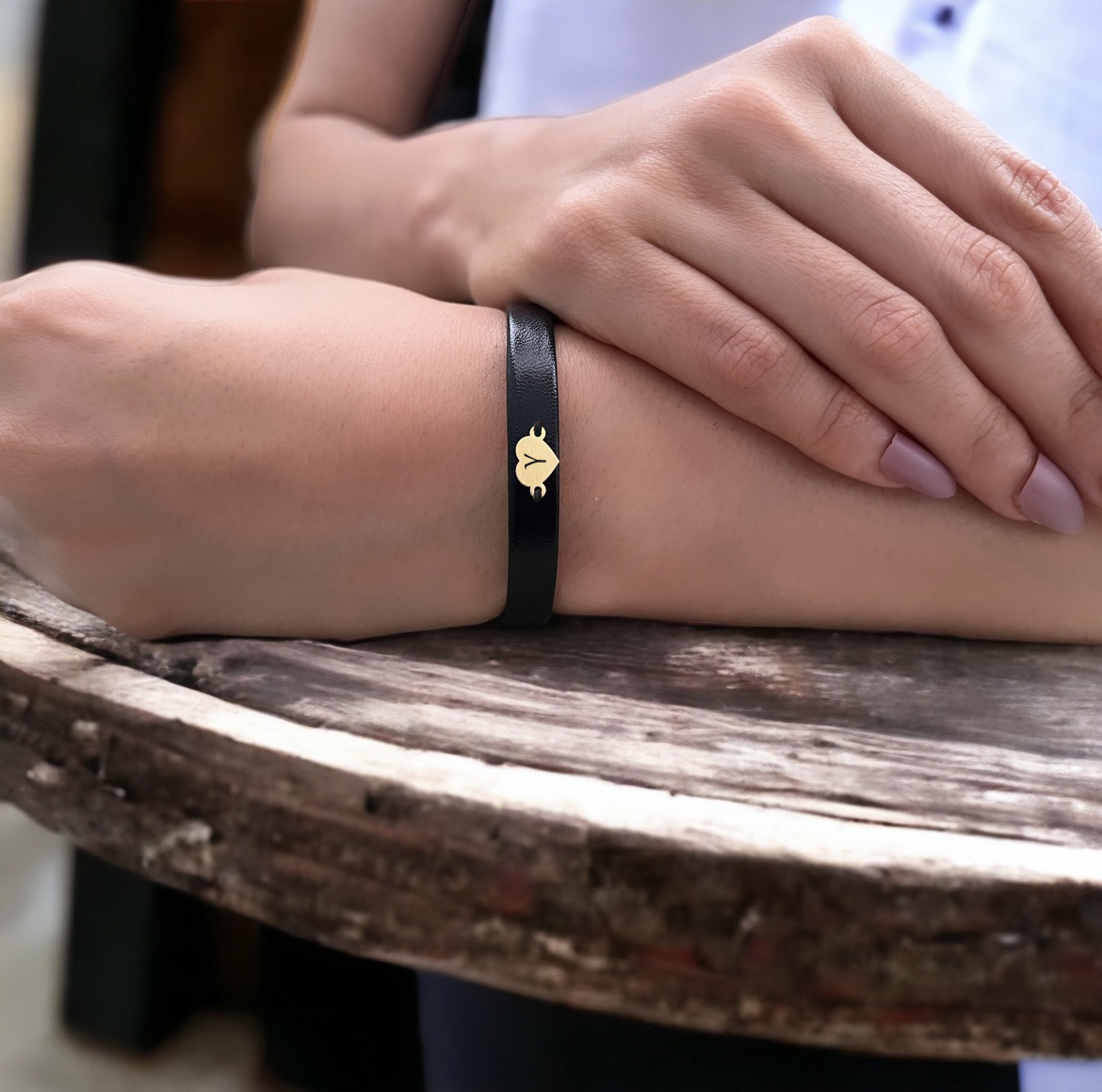 “14 Ayar Altın Plakalı Harfe Özel Doğal Siyah Derili Kalp Figürlü Hediye Bileklik-542” için yorum yapan ilk kişi siz olun