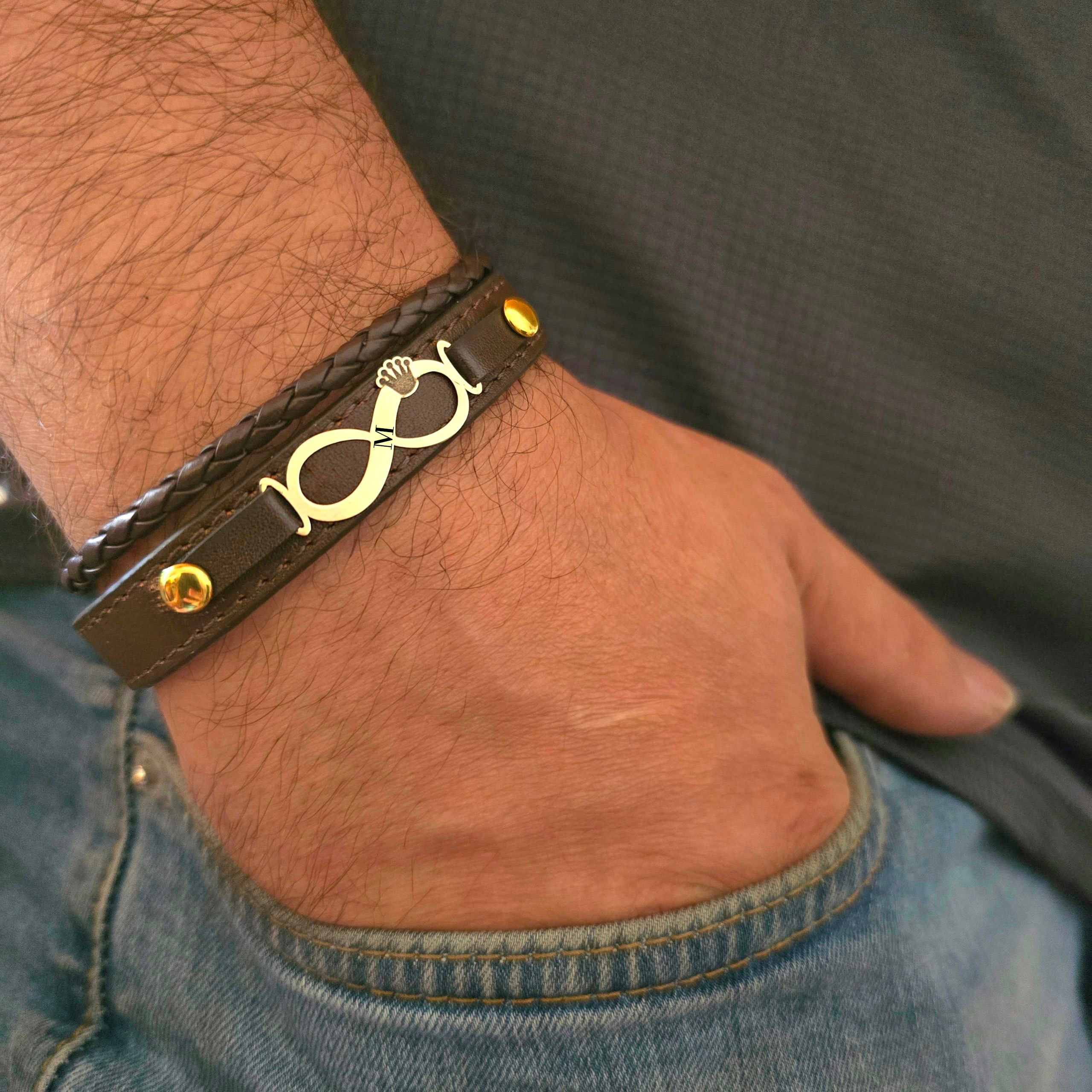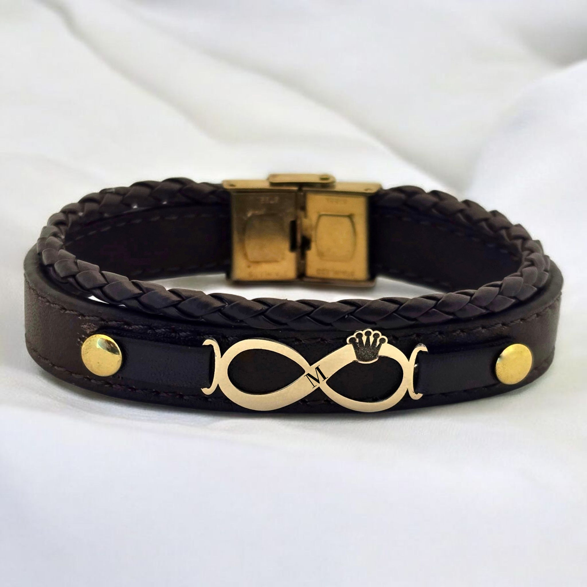 -Tasarım: Taç detaylı sonsuzluk motifli ve koyu kahverengi derili.