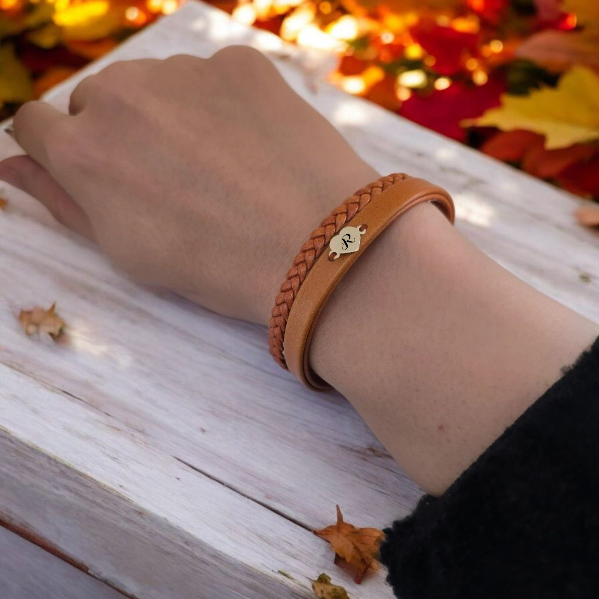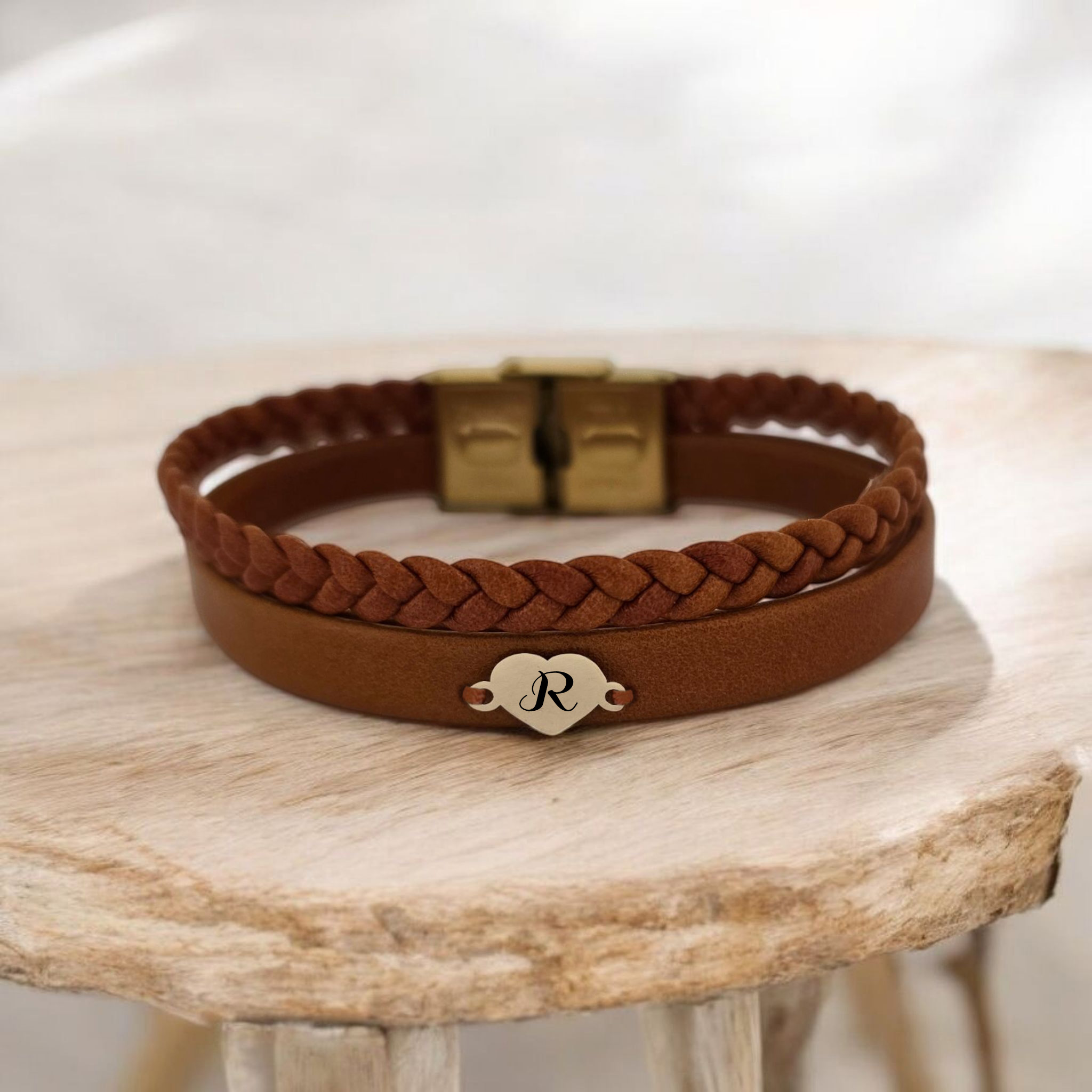 “14 Ayar Altın Plakalı Harfe Özel Kalp Figürlü Doğal Kahverengi Derili Hediye Bileklik-401” için yorum yapan ilk kişi siz olun