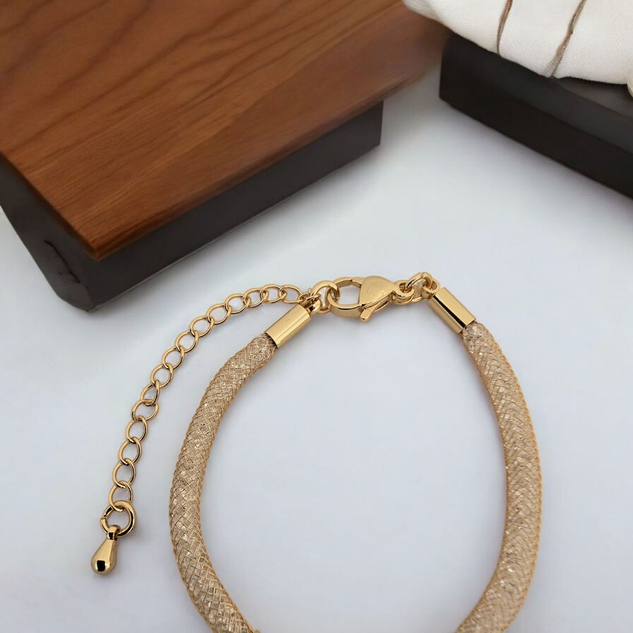-Bileklik Birleşim Materyali: 14 Ayar Altın Plaka — Paslanmaz çelik bağlantılar.