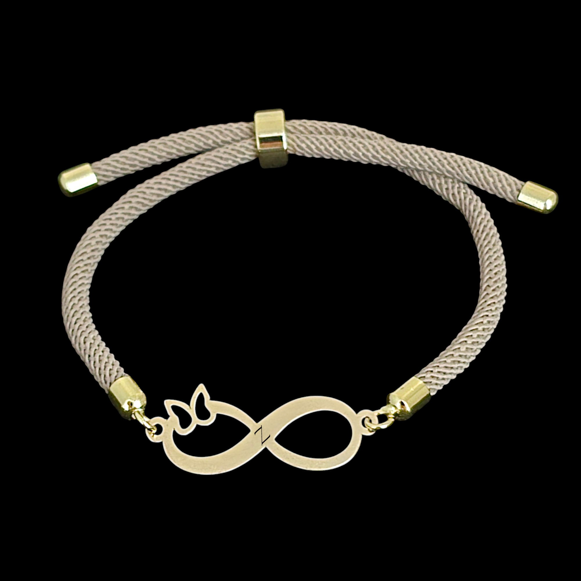 -Tasarım: Sonsuzluk figürlü ve krem renkli örgü ipli.