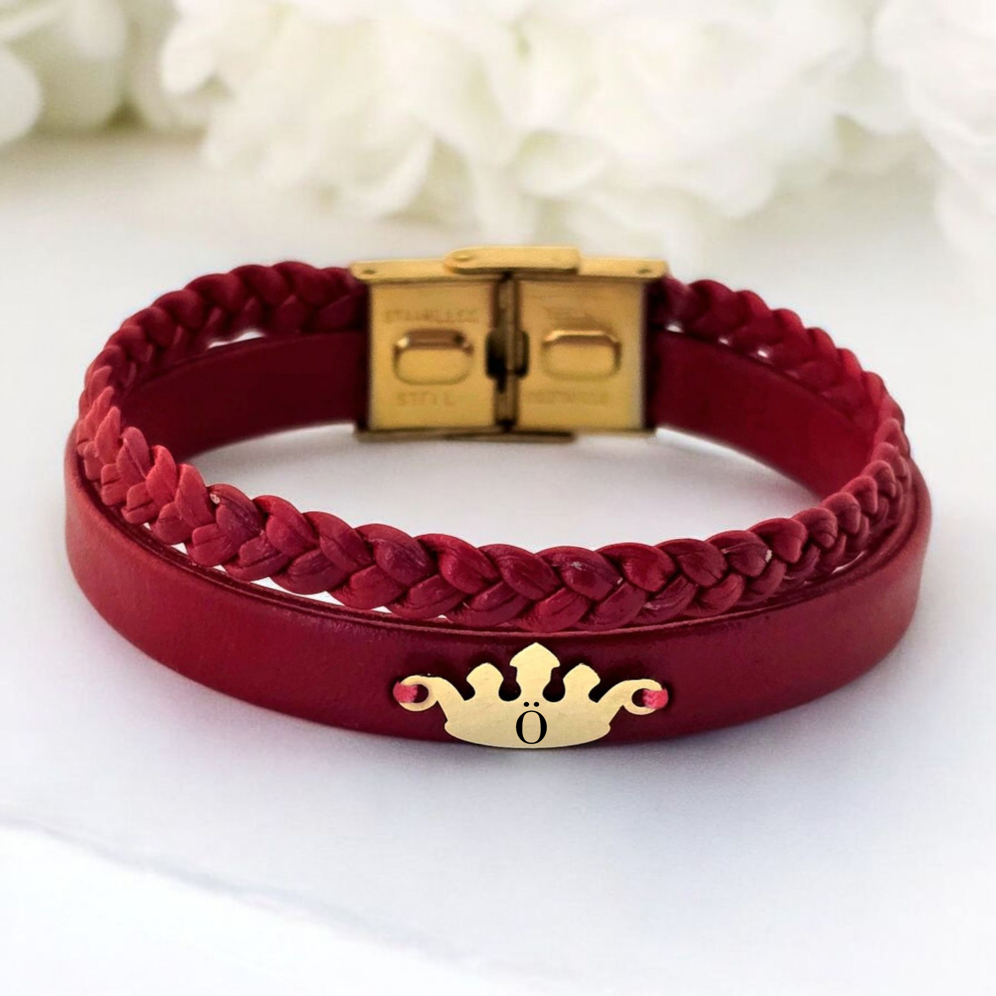 -Tasarım: Taç figürlü ve doğal bordo derili.