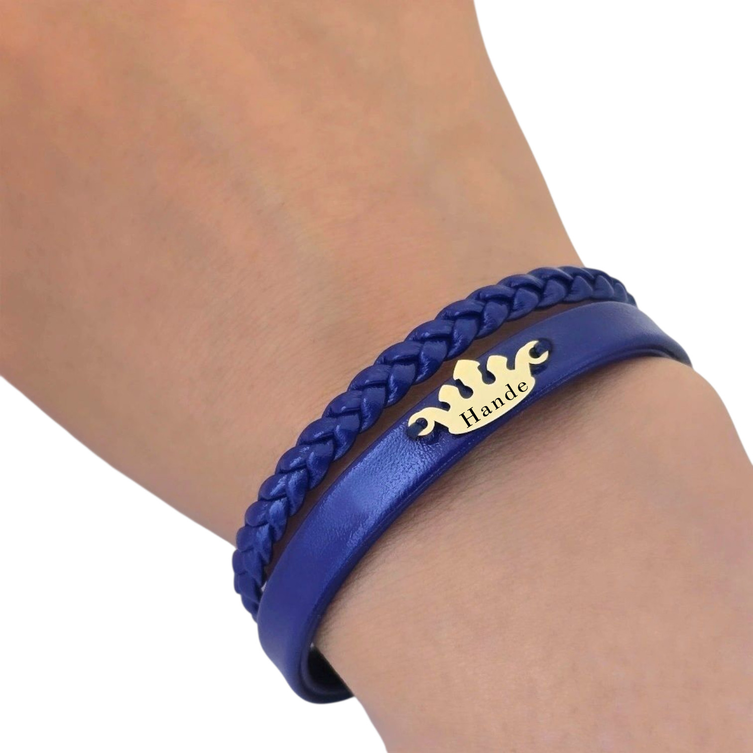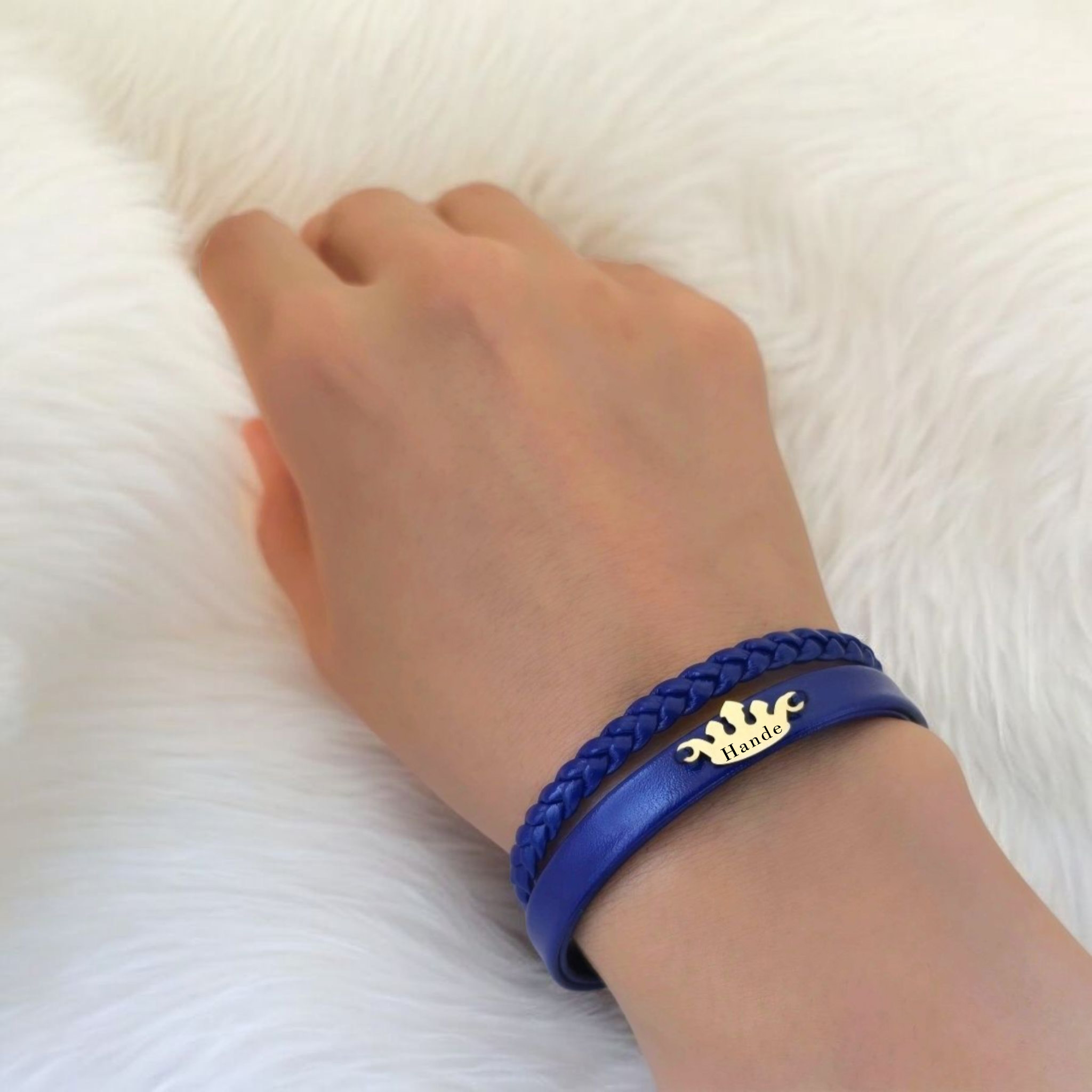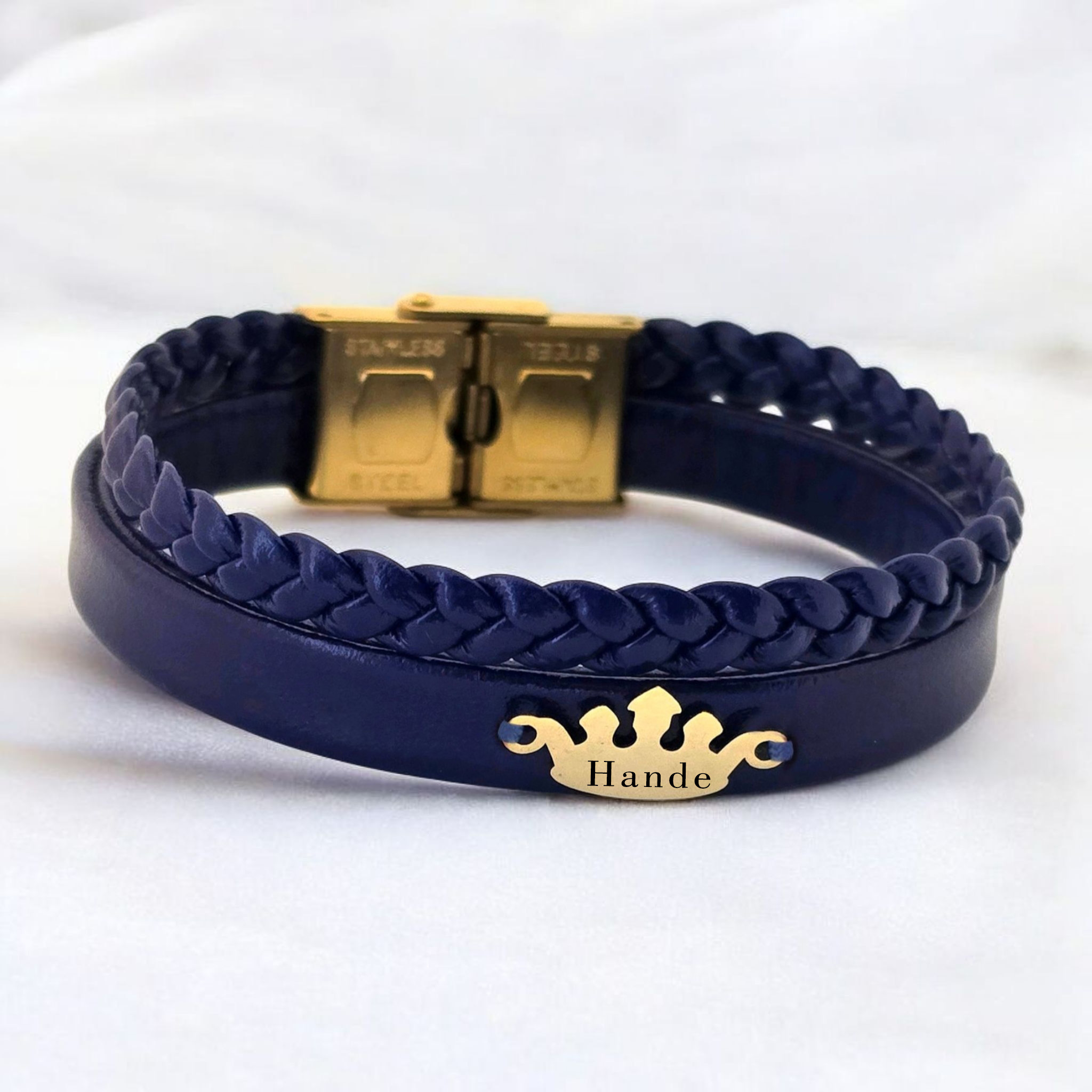 -Tasarım: Taç motifli ve doğal lacivert derili.