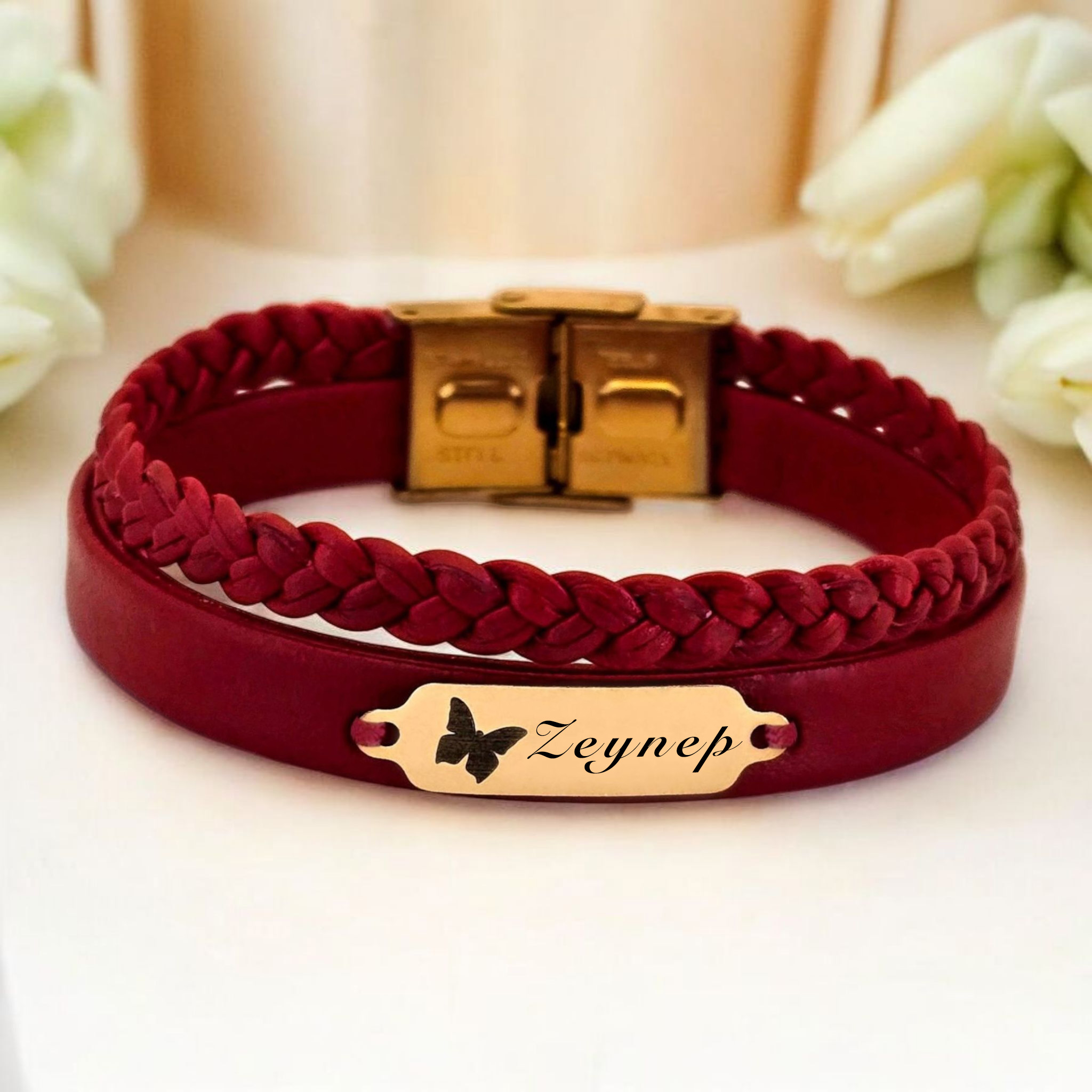 -Tasarım: Kelebek figürlü ve hakiki bordo derili.