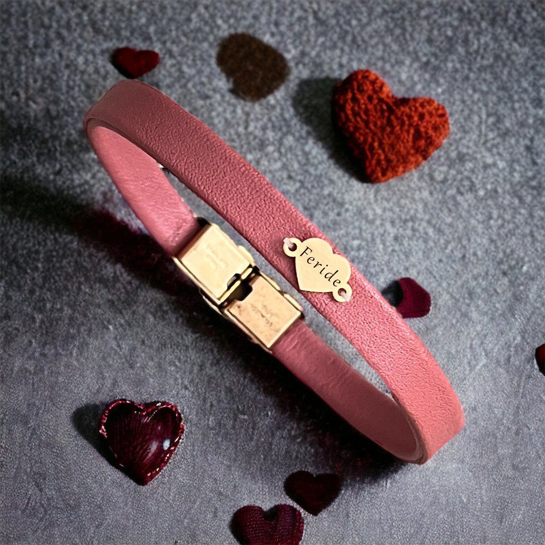 -Tasarım: Kalp motifli ve açık pembe derili.