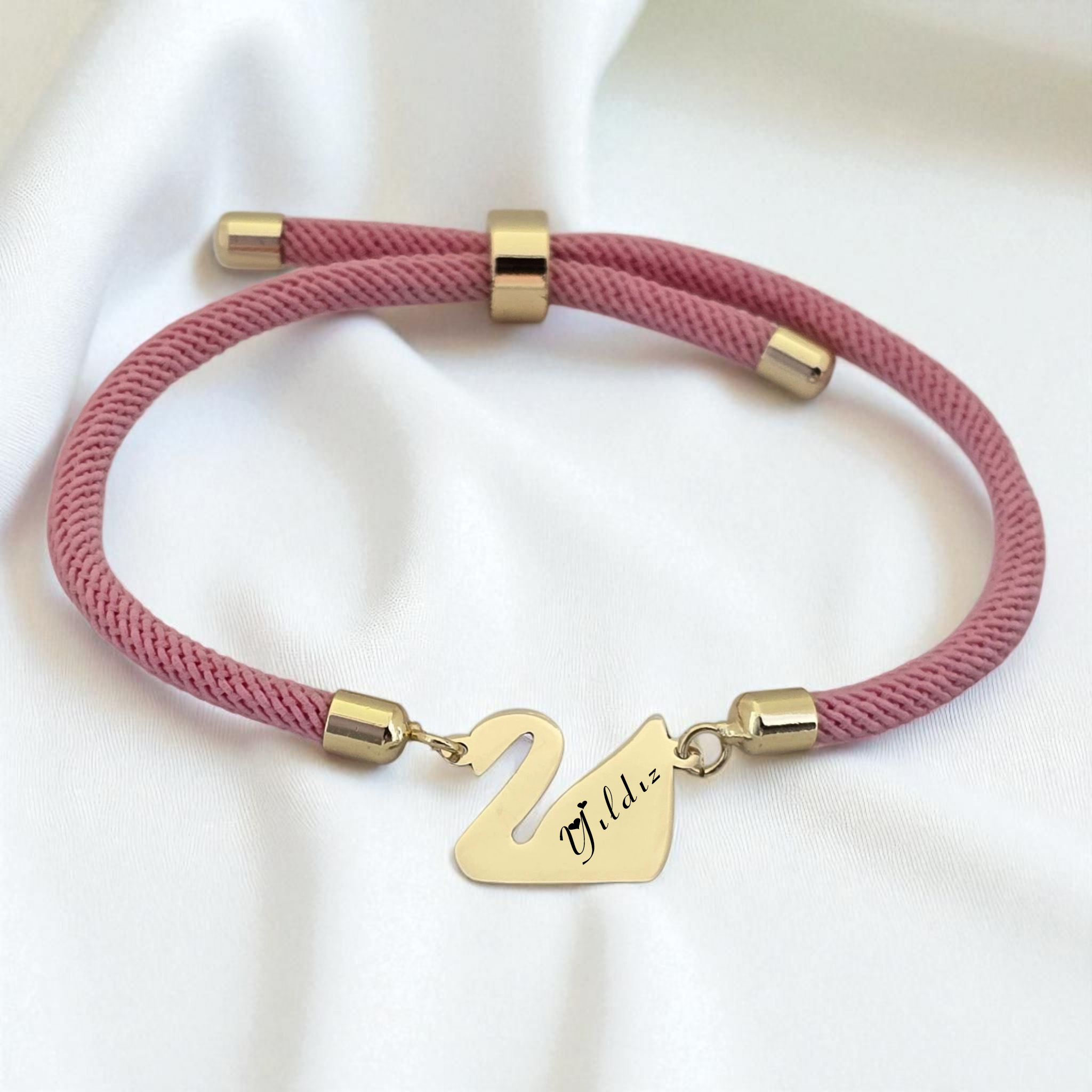 -Tasarım: Kuğu kuşu motifli ve pembe örgü ipli.