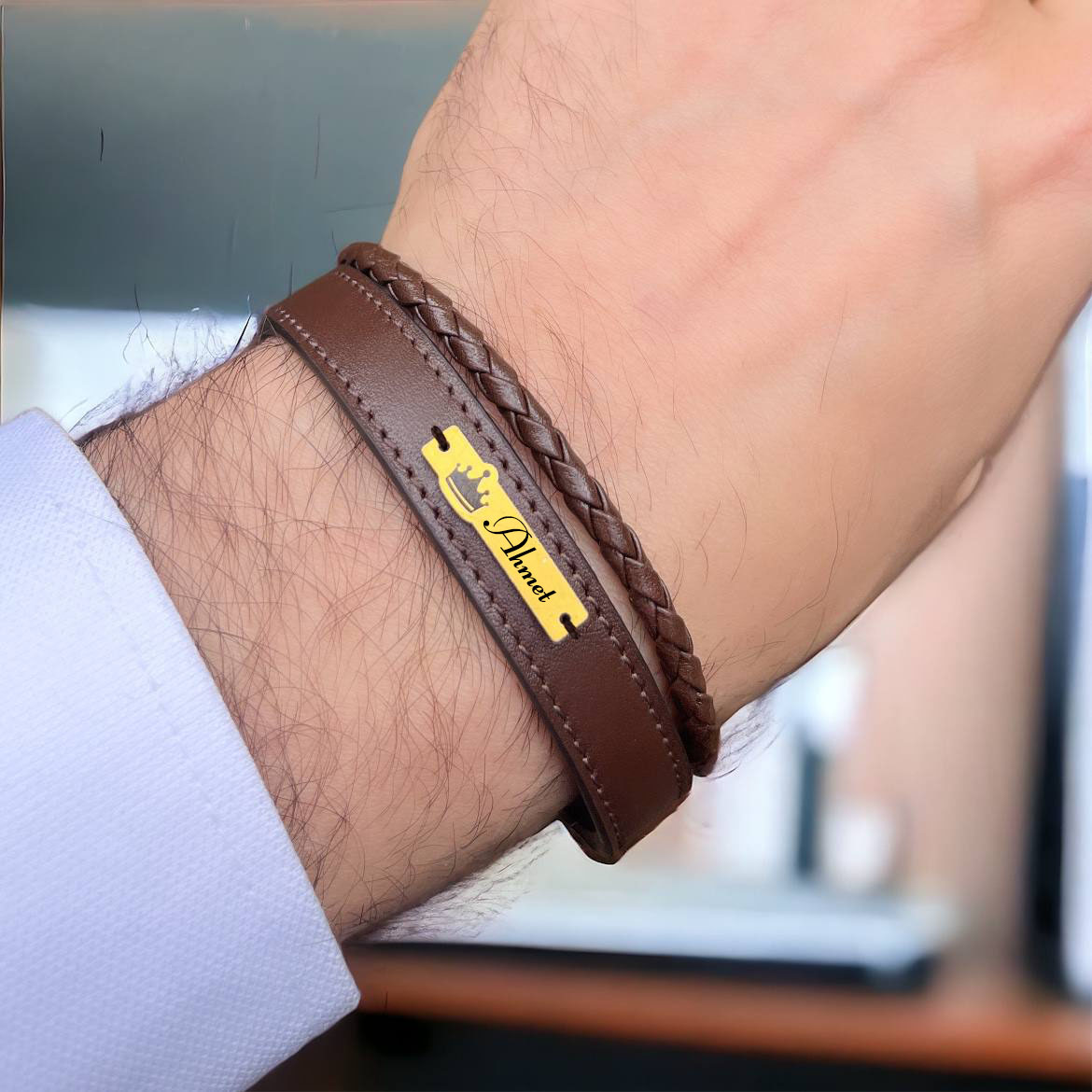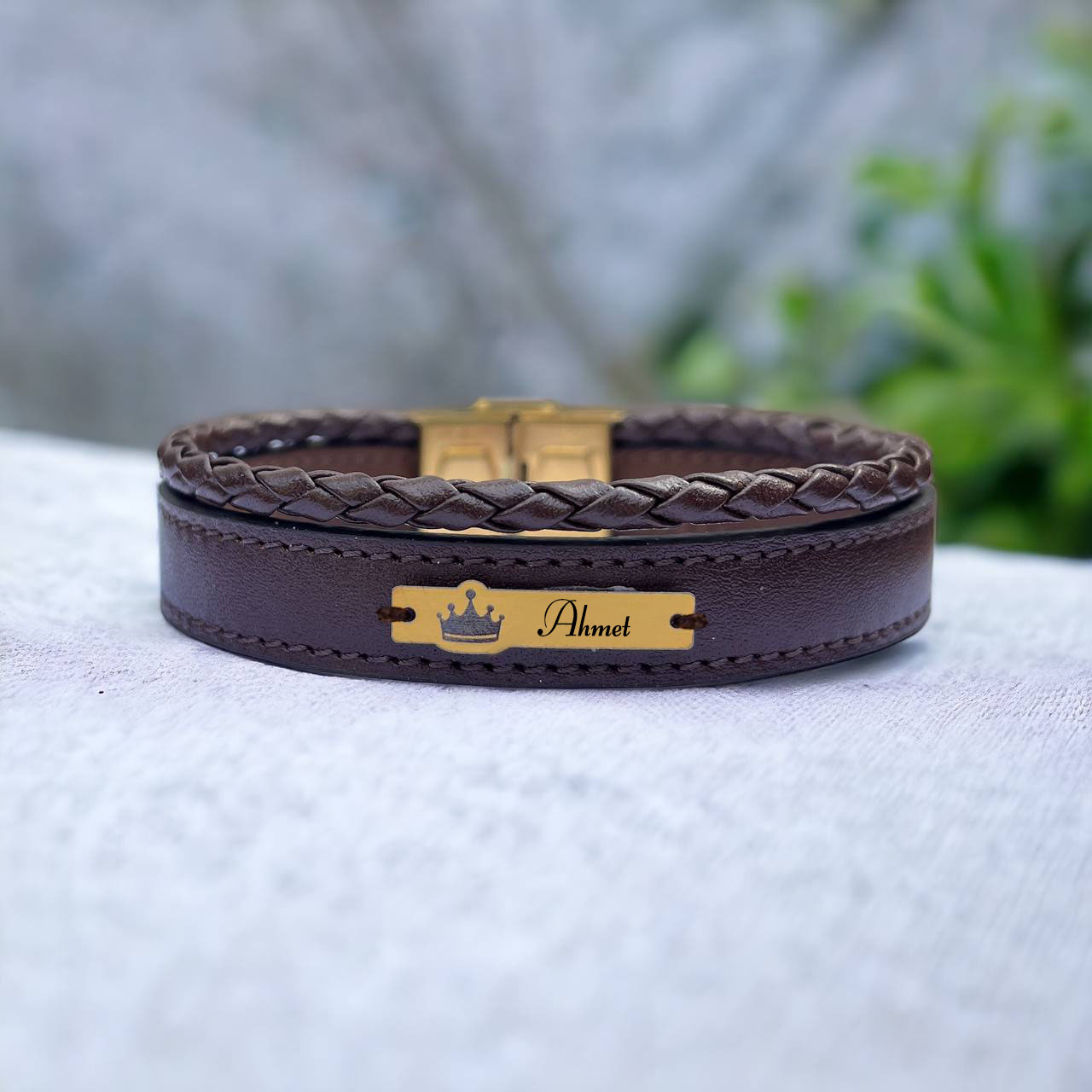 -Tasarım: Taç figürlü ve hakiki kahverengi derili.