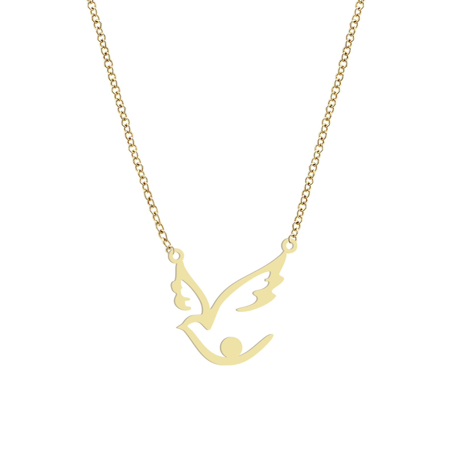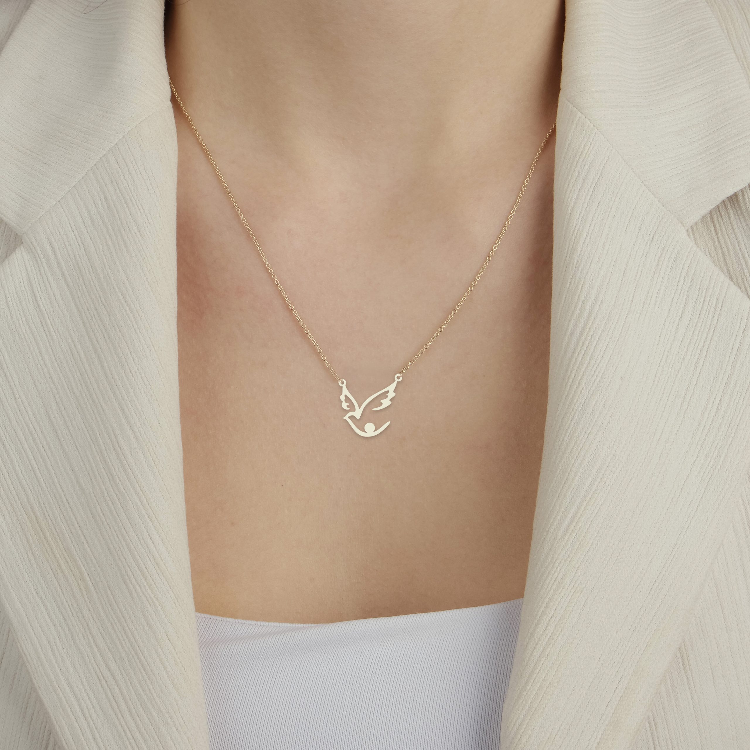 14 Ayar Altın Plakalı Kuş Kanadı ve İnci Figürlü Özel Günler İçin Hediyelik Altın Kolye-867