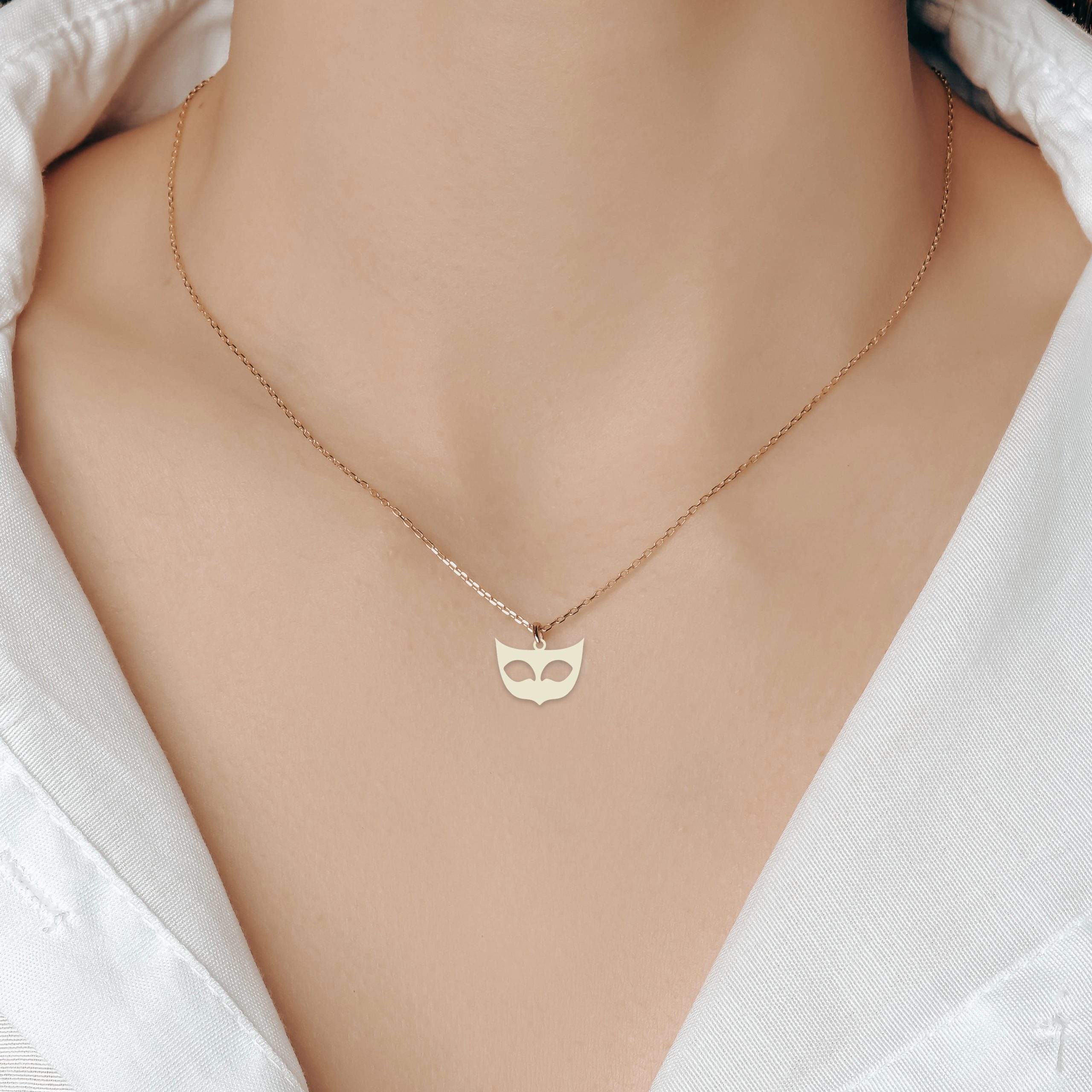 14 Ayar Altın Plakalı Maske Motifli Yıl Dönümü Hediyesine Özel Altın Kolye-866
