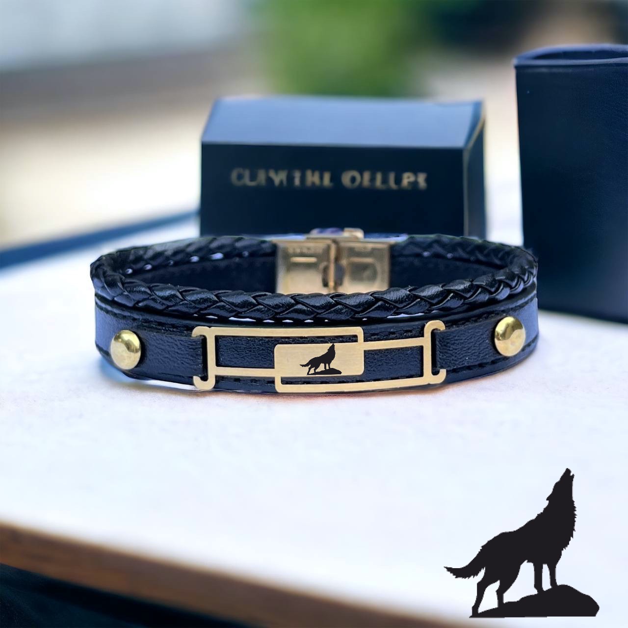 14 Ayar Altın Plakalı Sembole Özel Çerçeveli Dikdörtgen Figürlü Hakiki Siyah Derili Hediye Bileklik-591