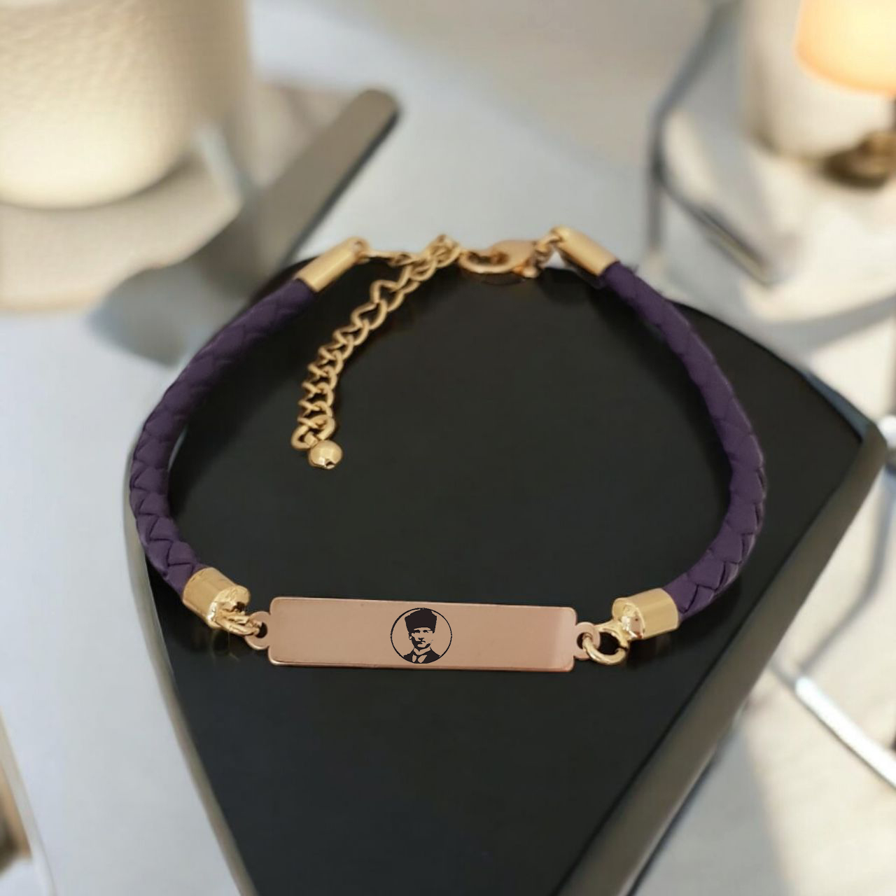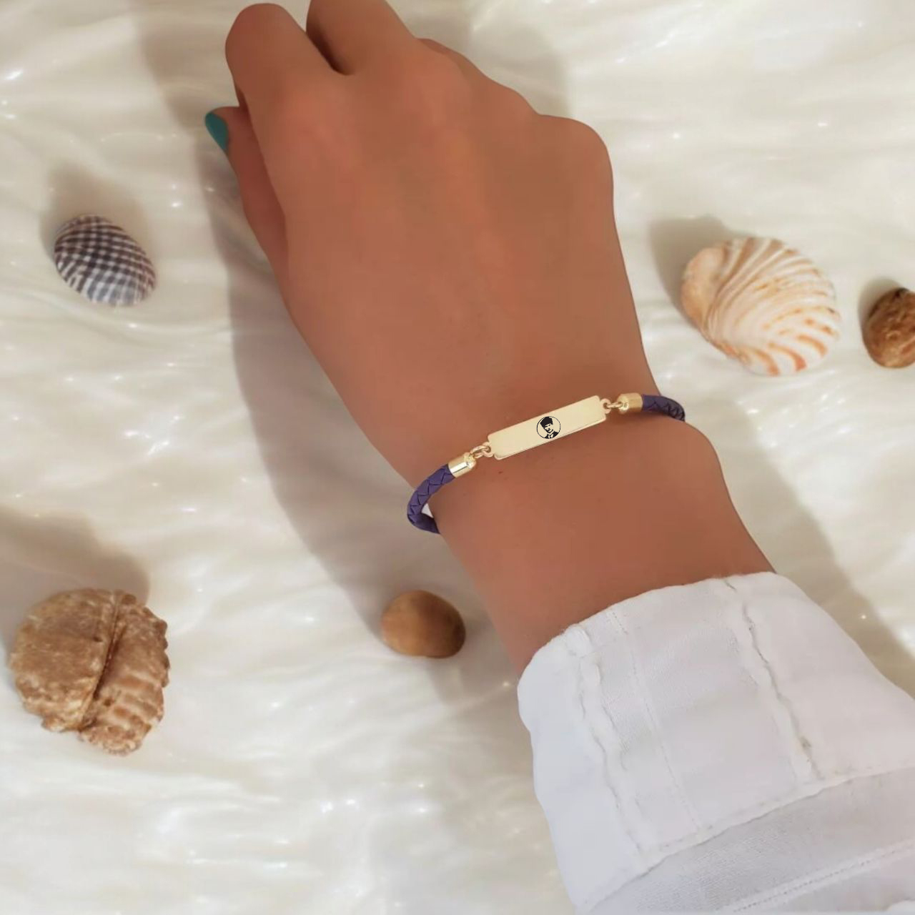 “14 Ayar Altın Plakalı Sembole Özel Dikdörtgen Figürlü Doğal Mor Derili Hediye Bileklik-412” için yorum yapan ilk kişi siz olun