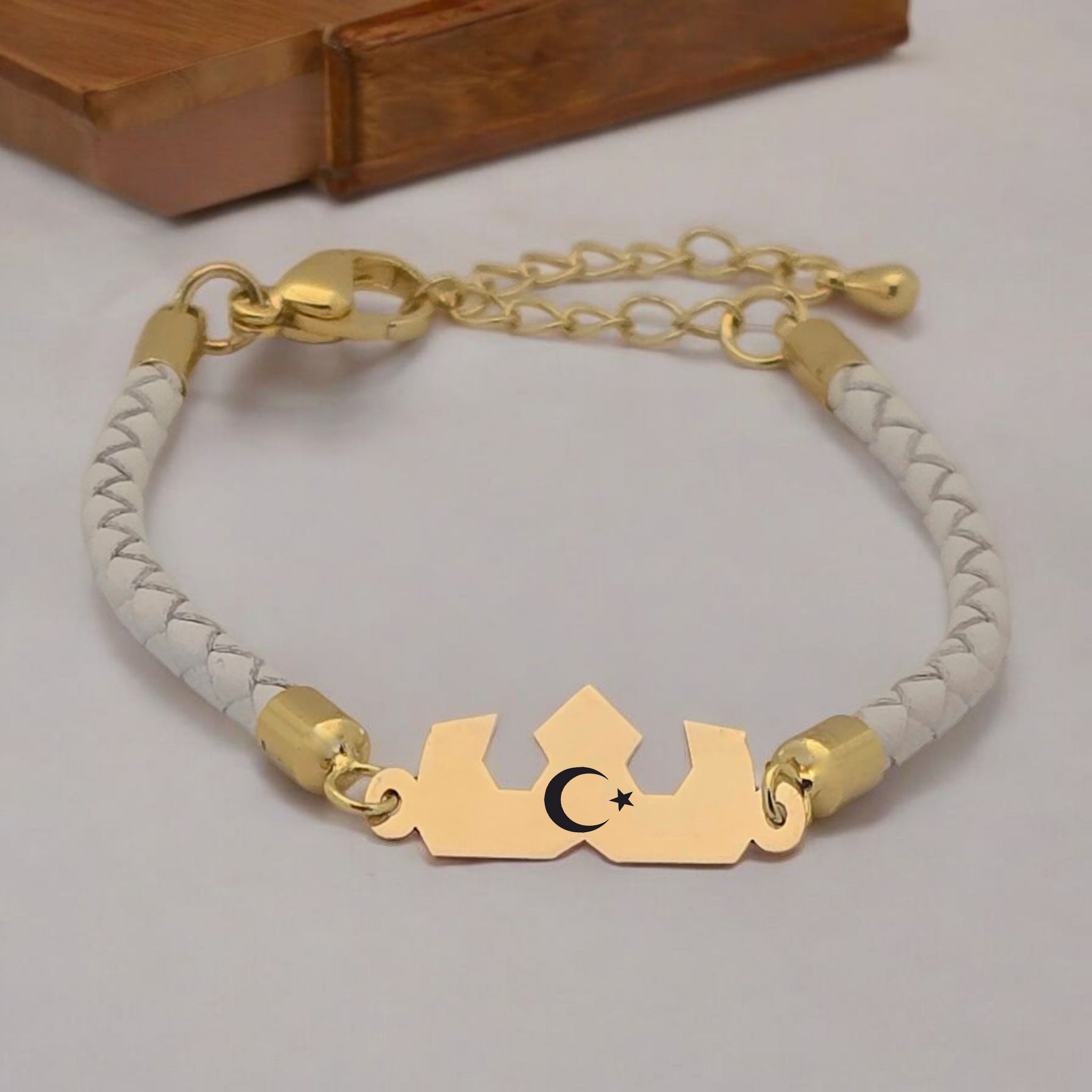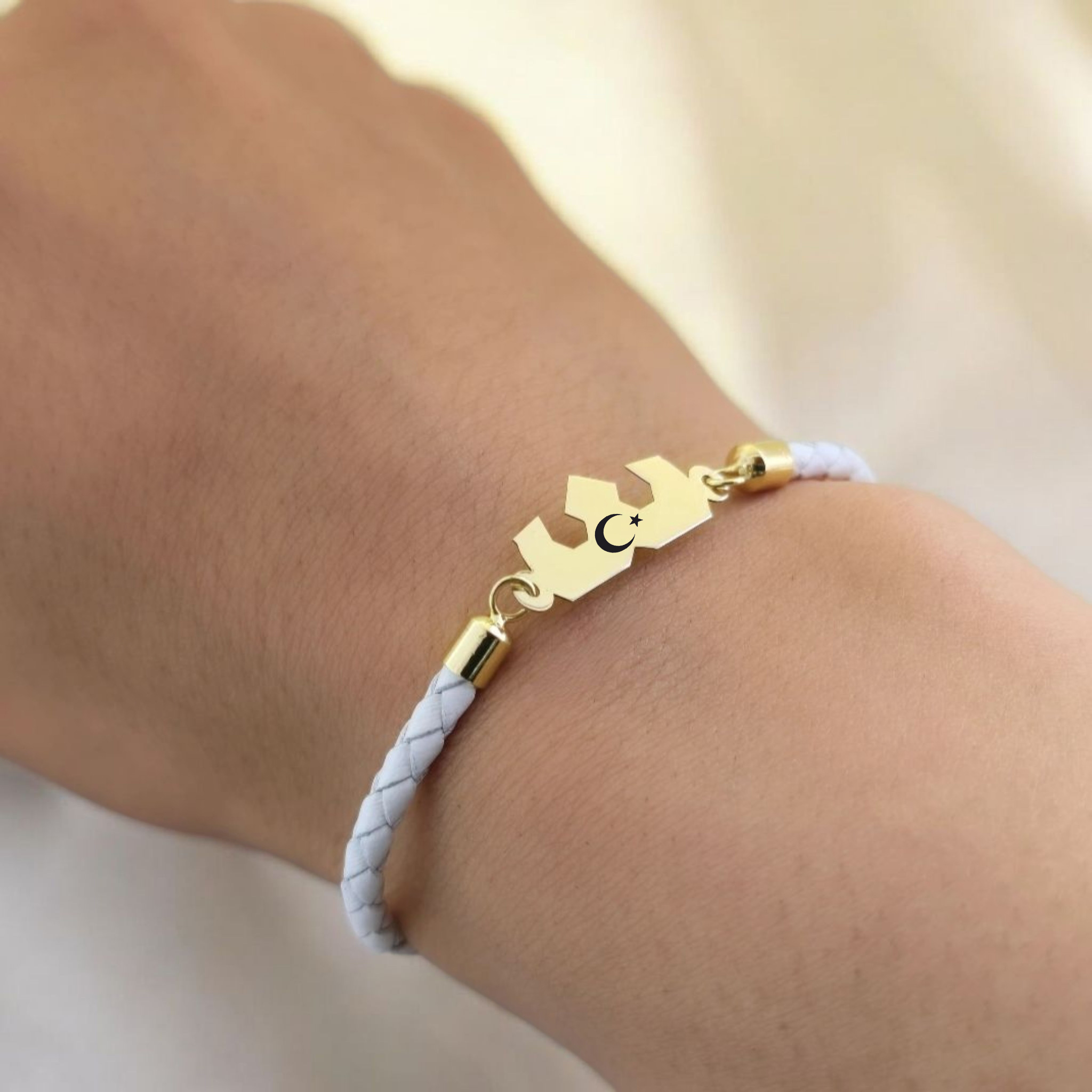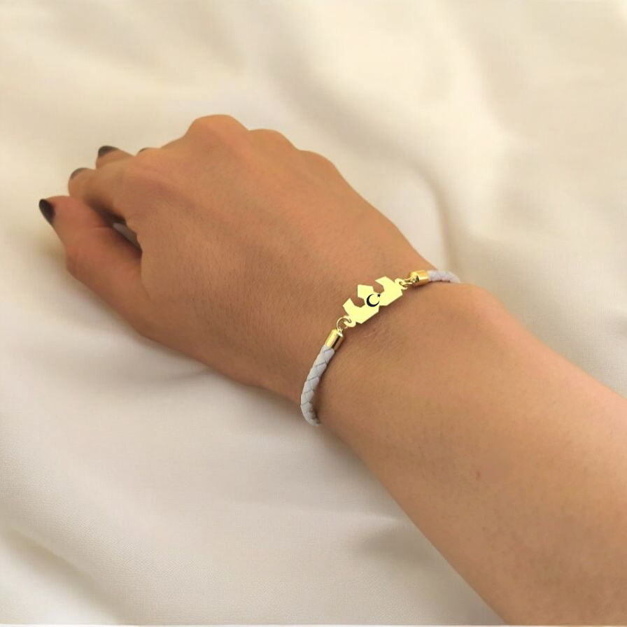“14 Ayar Altın Plakalı Sembole Özel Doğal Beyaz Derili Taç Motifli Hediye Bileklik-465” için yorum yapan ilk kişi siz olun