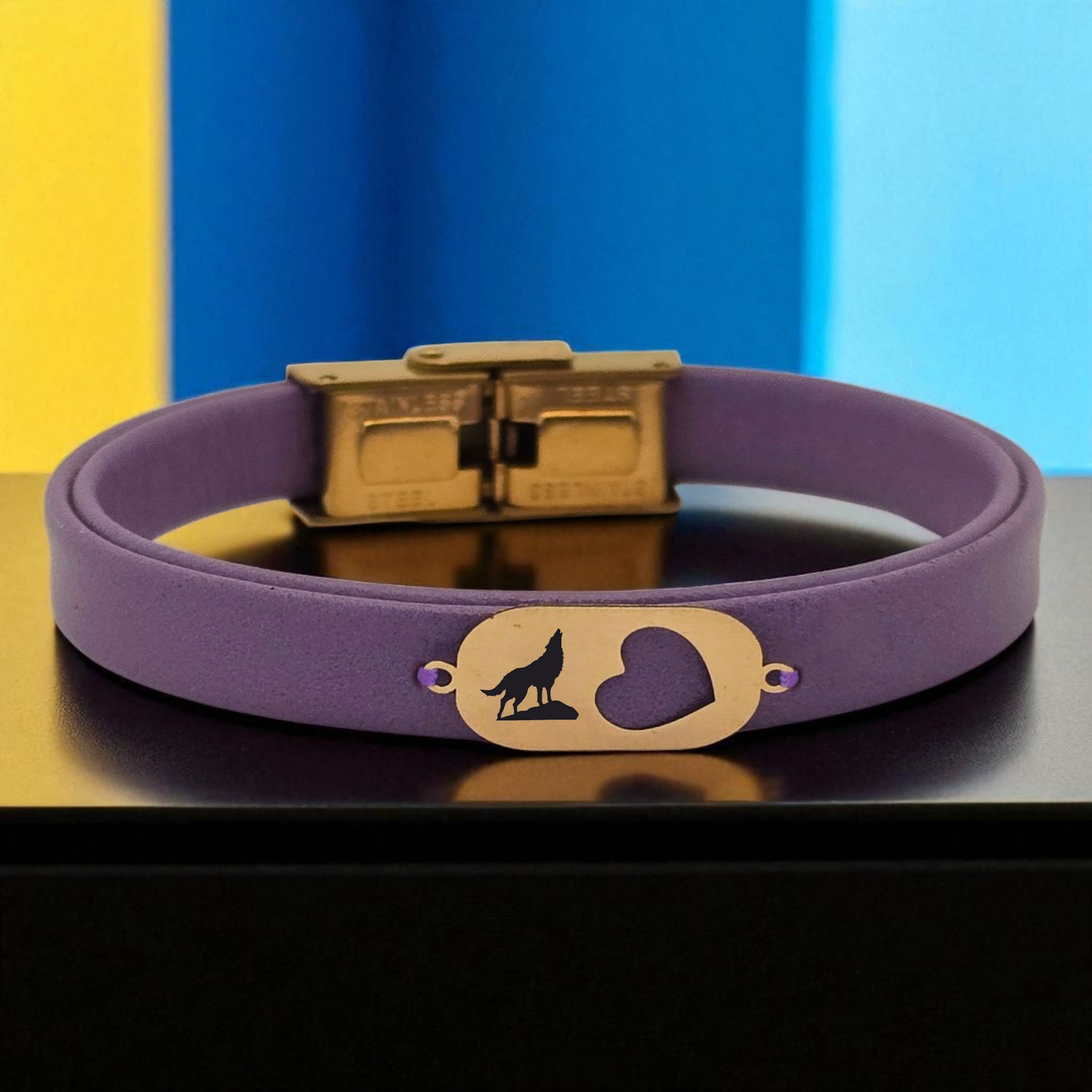 14 Ayar Altın Plakalı Sembole Özel Doğal Mor Derili Kalp Detaylı Oval Motifli Hediye Bileklik-558