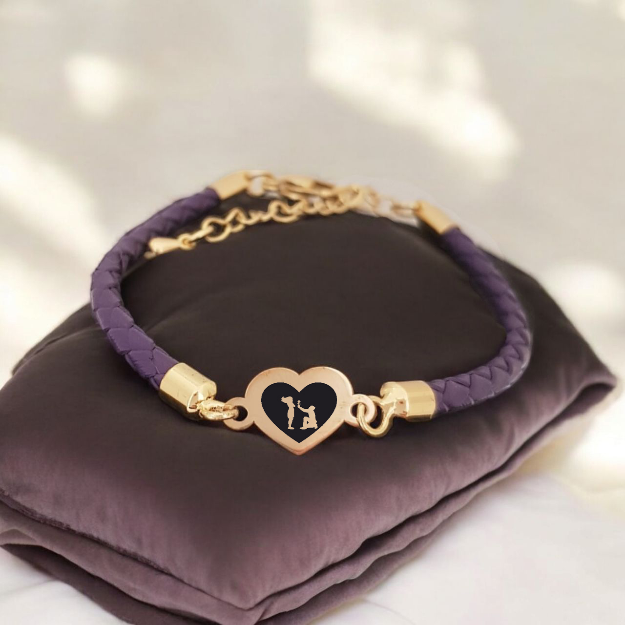 “14 Ayar Altın Plakalı Sembole Özel Doğal Mor Derili Kalp Figürlü Hediye Bileklik-472” için yorum yapan ilk kişi siz olun