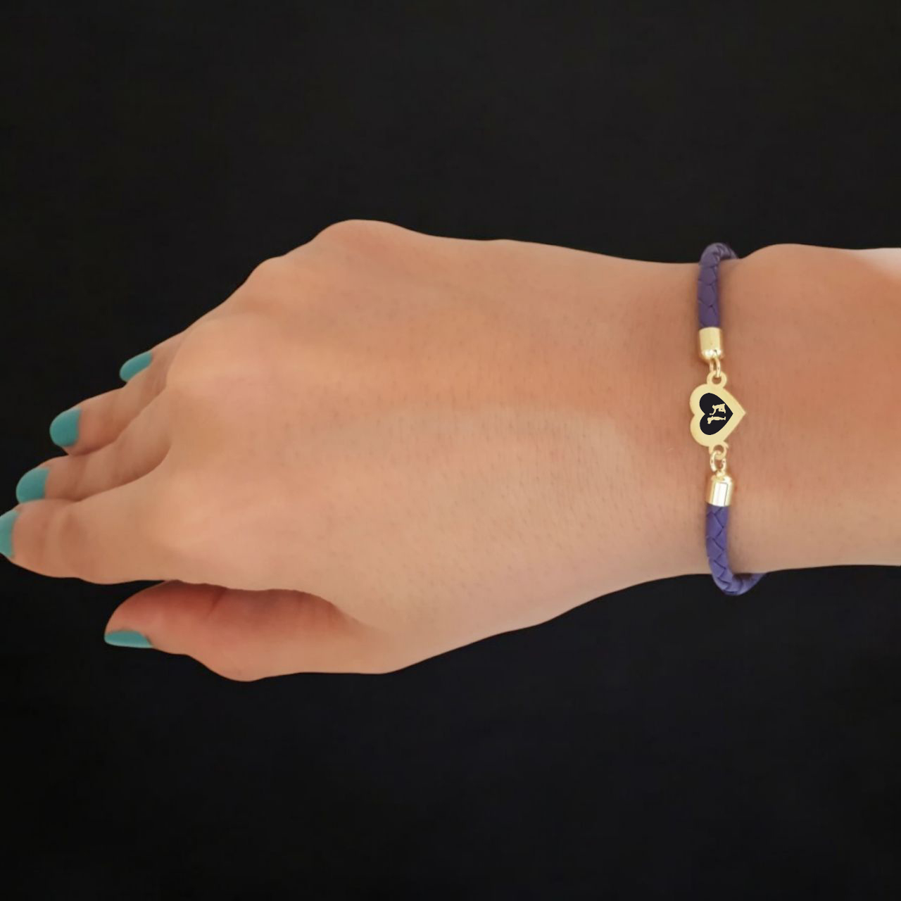 14 Ayar Altın Plakalı Sembole Özel Doğal Mor Derili Kalp Figürlü Hediye Bileklik-472