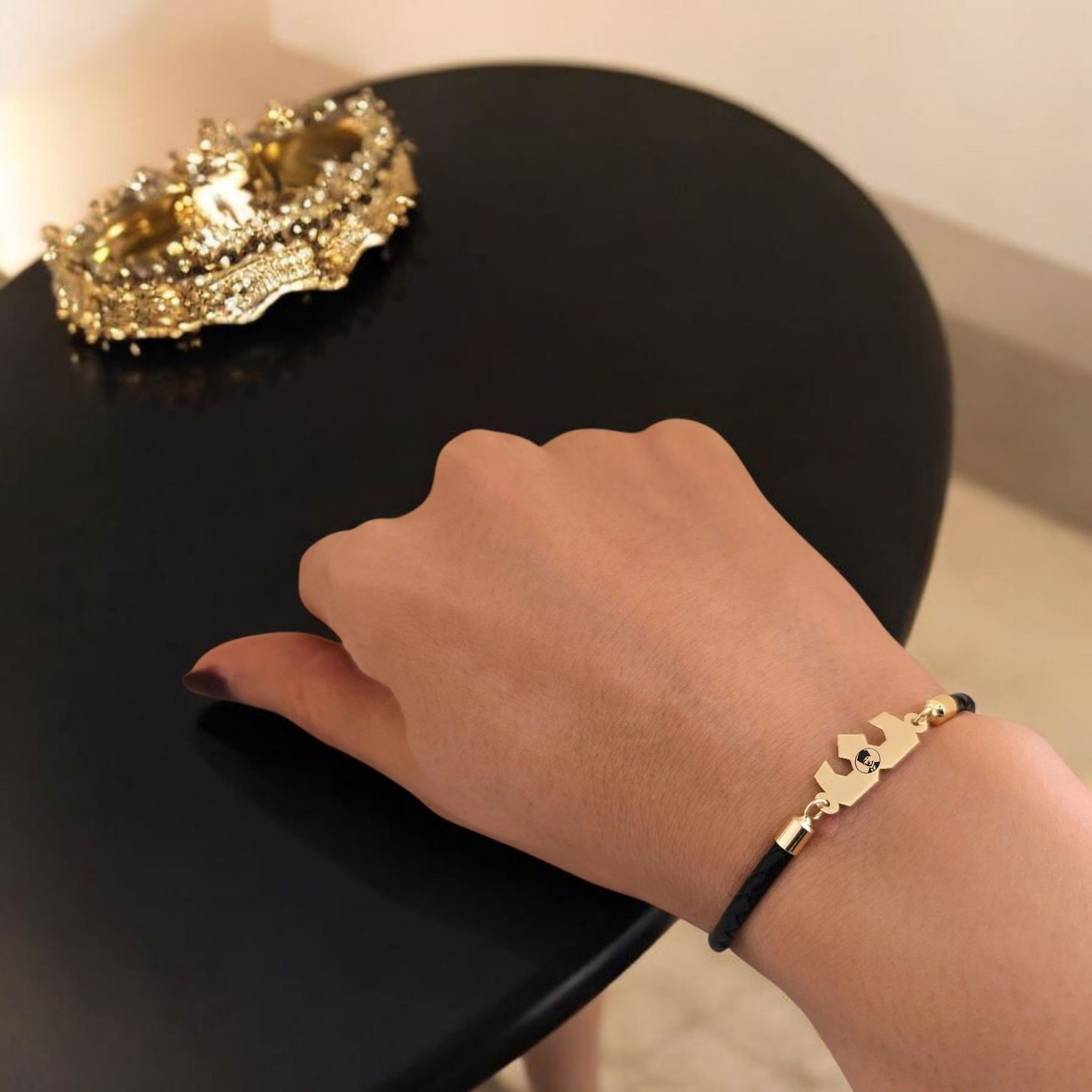 “14 Ayar Altın Plakalı Sembole Özel Doğal Siyah Derili Taç Figürlü Hediye Bileklik-462” için yorum yapan ilk kişi siz olun