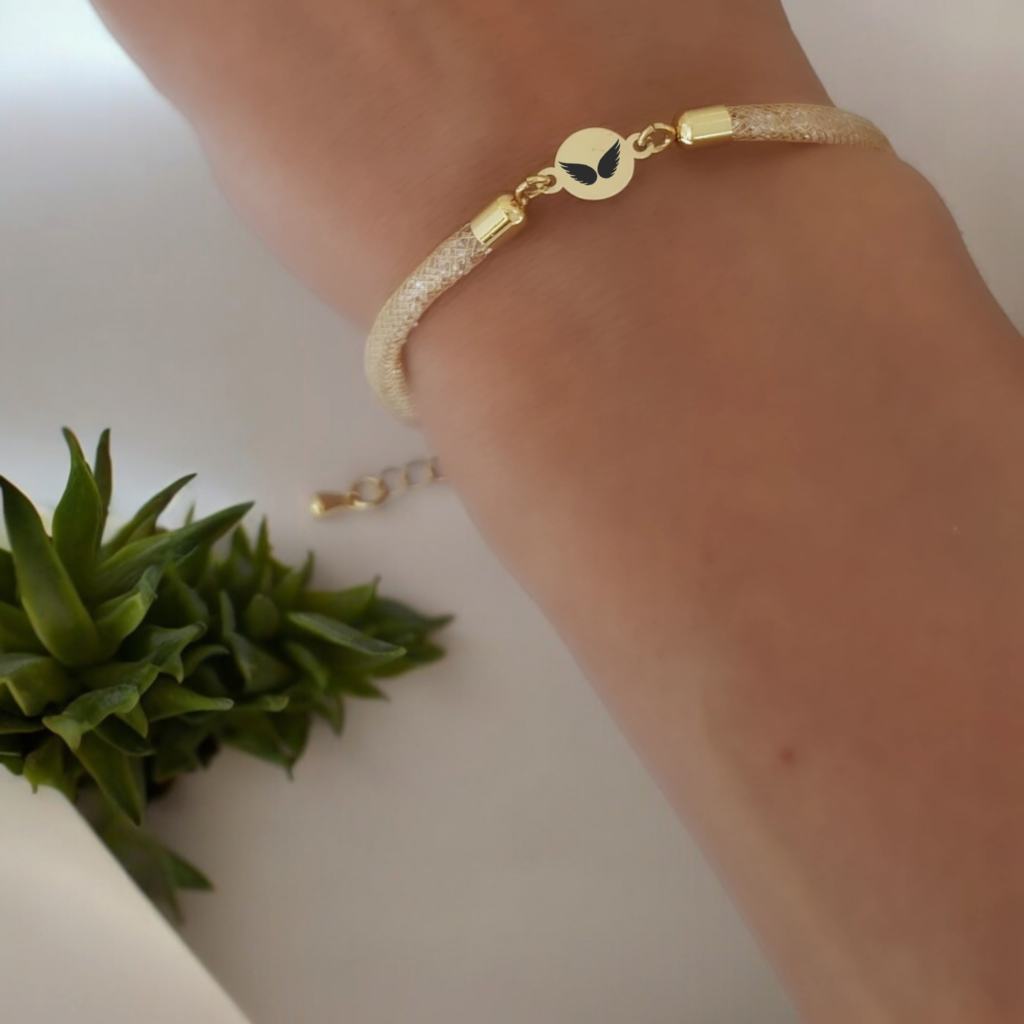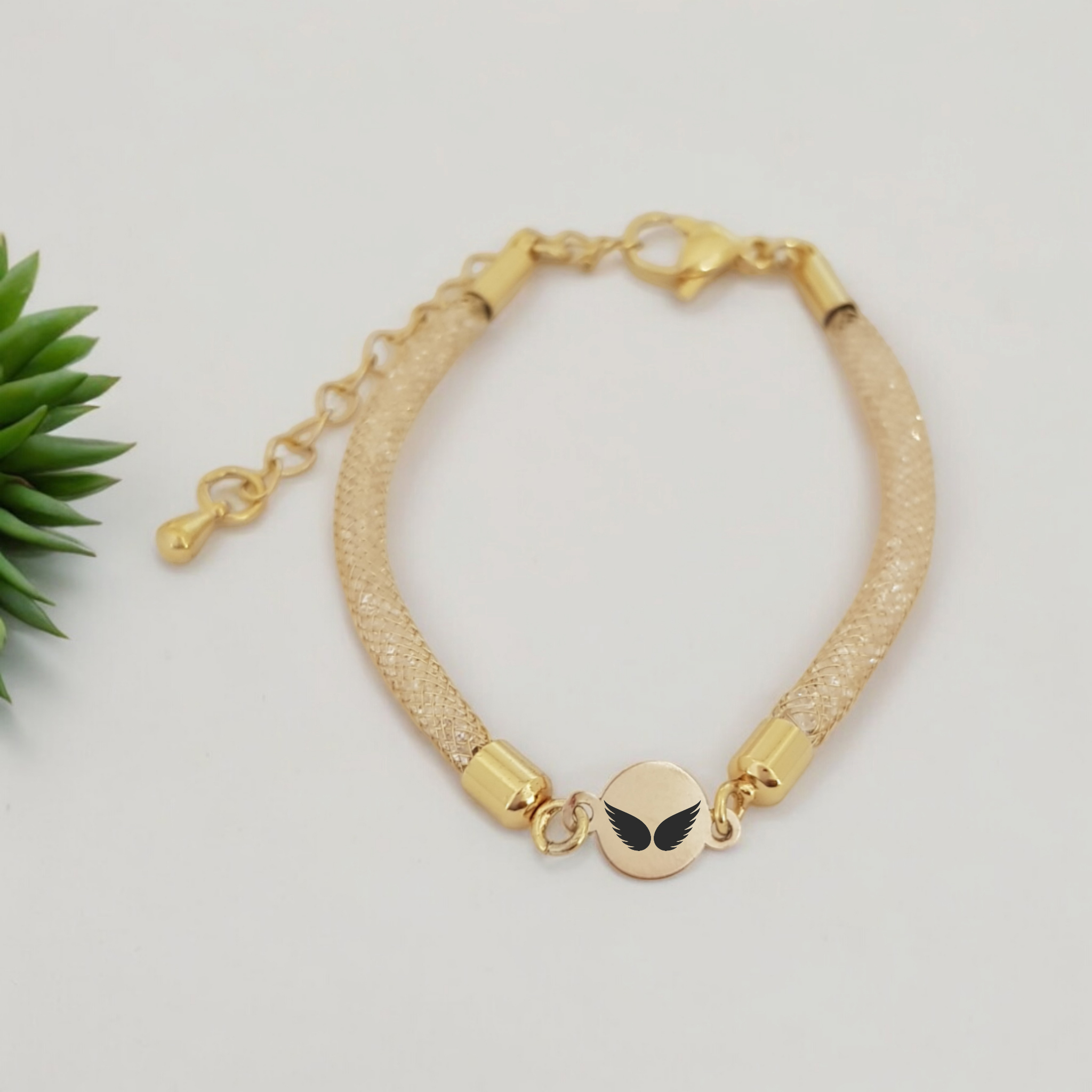 -Bileklik Birleşim Materyali: 14 Ayar Altın Plaka — Paslanmaz çelik bağlantılar.