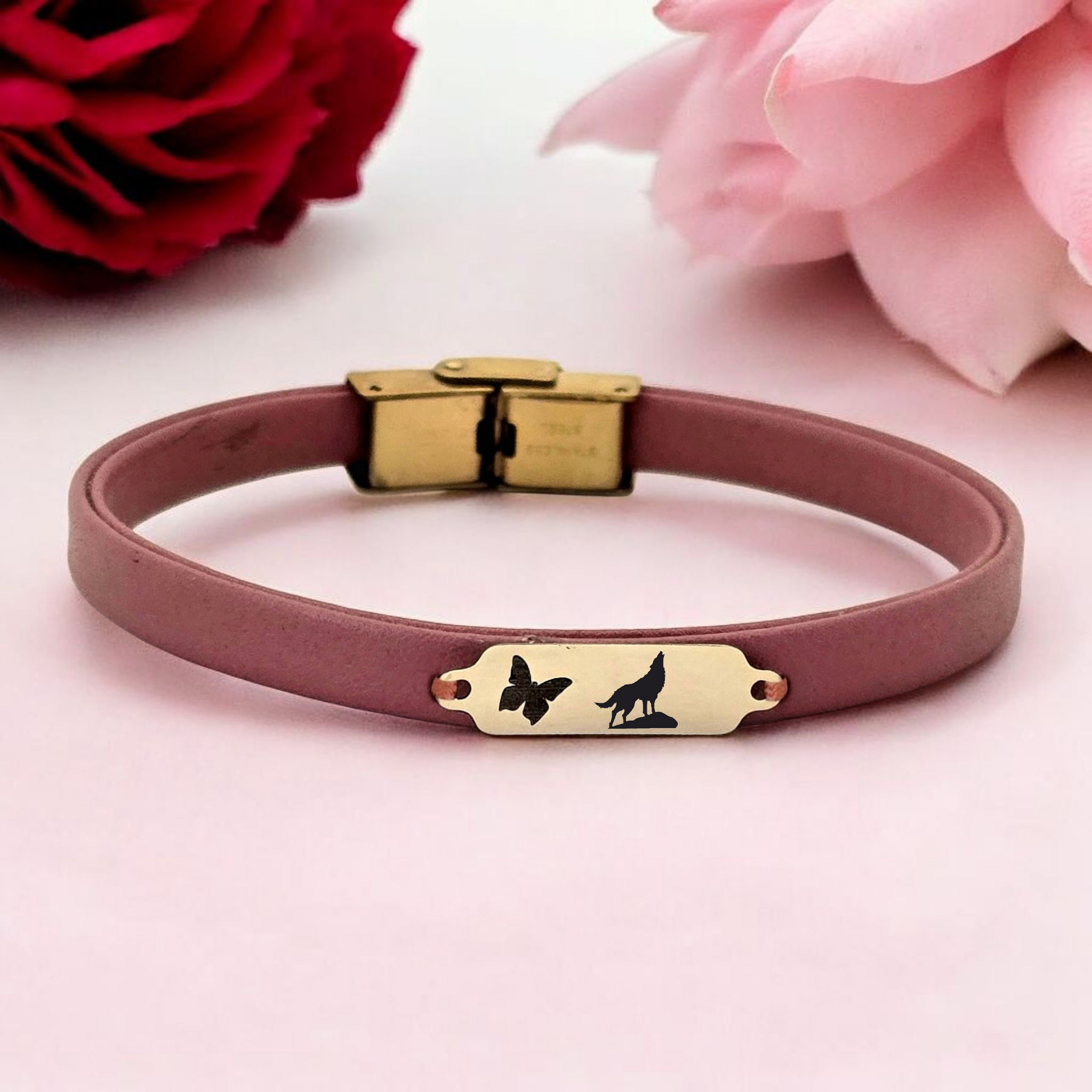 -Tasarım: Kelebek figürlü ve koyu pembe derili.