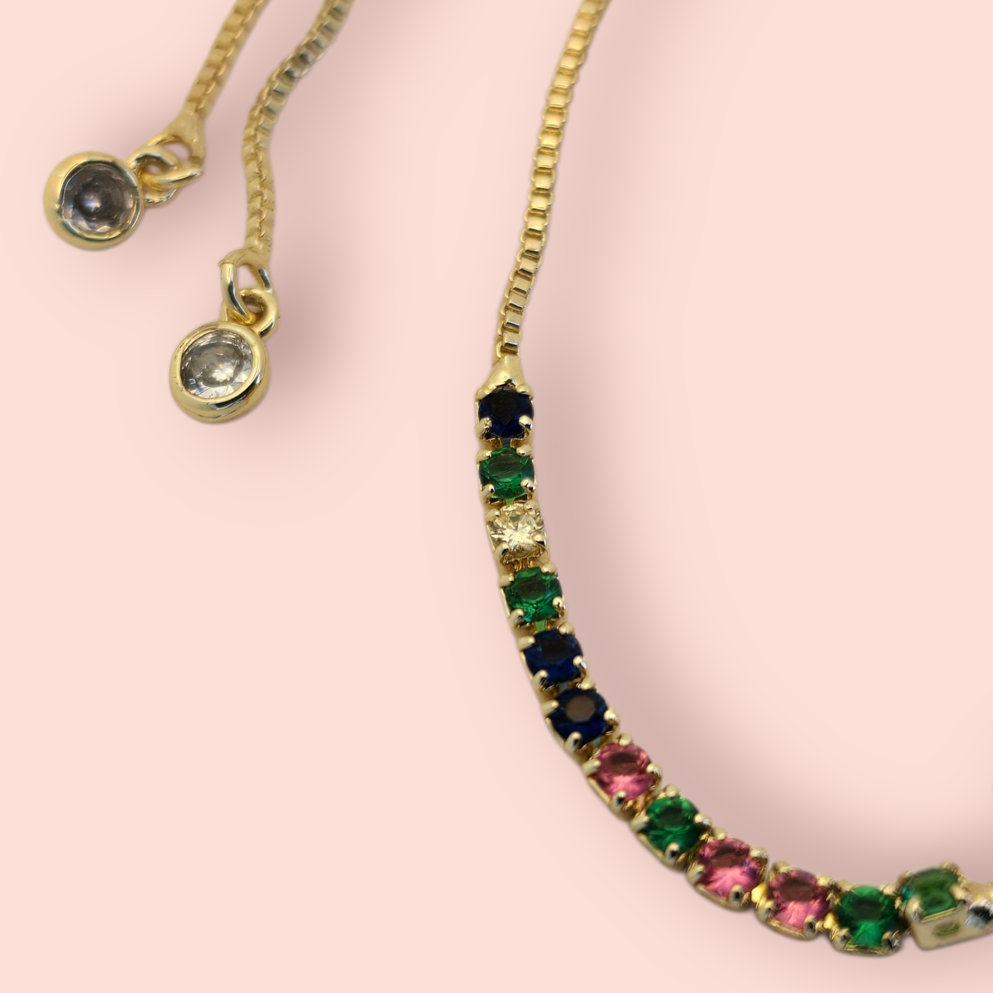 “14 Ayar Altın Plakalı Sembole Özel Zincirli Renkli Taş Desenli Taç Motifli Hediye Bileklik-489” için yorum yapan ilk kişi siz olun