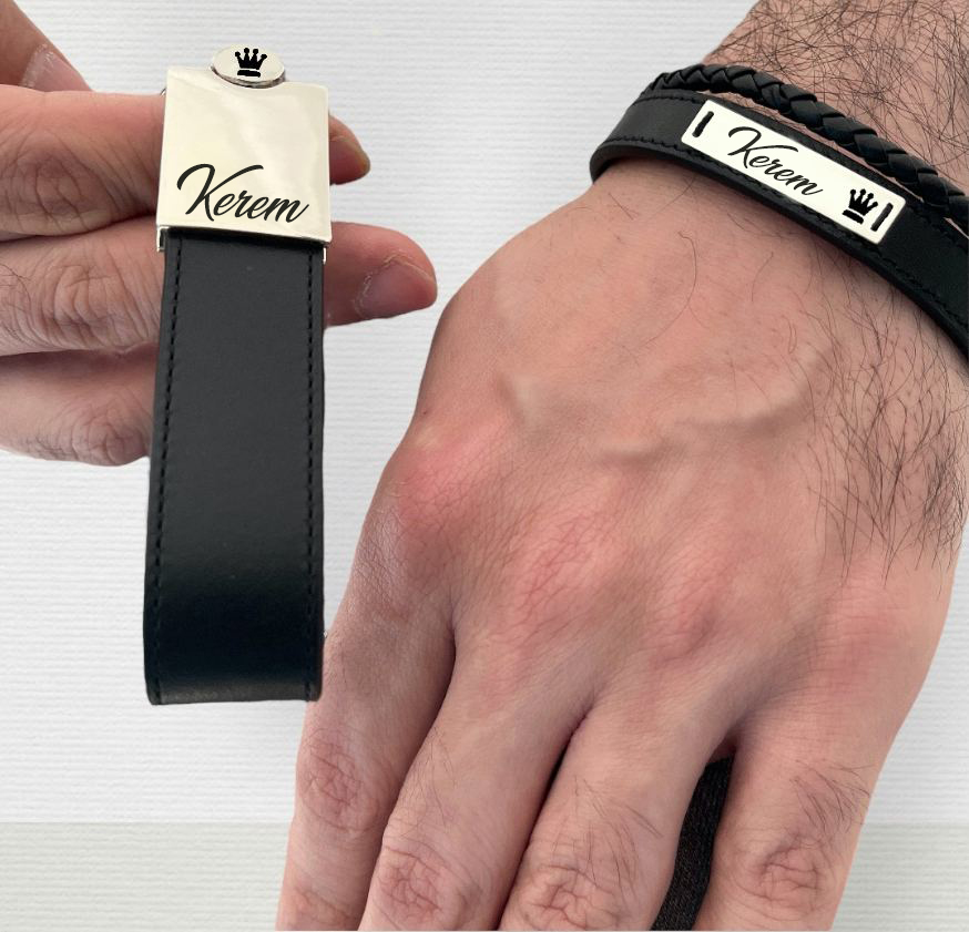 -Bilekliğin ve Anahtarlığın Birleşim Materyali: 925 Ayar Gümüş Plaka — Paslanmaz çelik bağlantılar.